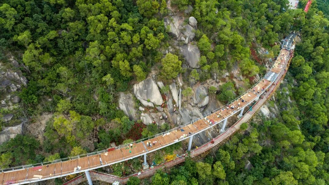步道全长近3000米,宽1.5米,由16000块经面层防滑处理的花岗岩条石铺砌而成,其中,坡度较陡的路段安装有安全护栏等防护设施。