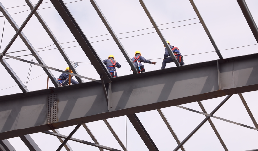 目前项目一期主机厂钢结构框架基本成型,办公辅房主体结构已完成,室内装修及外墙贴砖工作即将开展,项目已完成总计划进度的80%,目前,项目正在加班加点,坚定不移按照主机厂年内竣工、投产的目标加快建设进度。