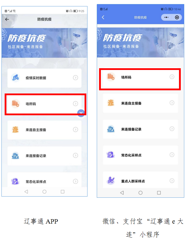 各类场所主办方要登录辽事通APP“e大连频道”或微信、支付宝“辽事通·e大连”小程序,注册申领“场所码”,自行打印并放置在场所入口显著位置,供进入场所人员扫码。