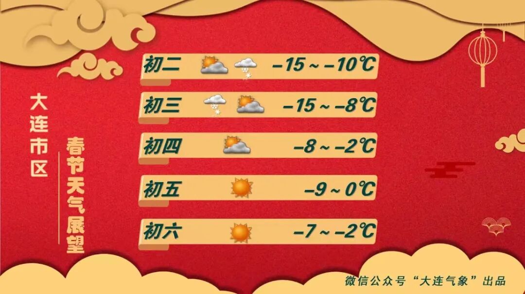 大连春节期间天气预报: