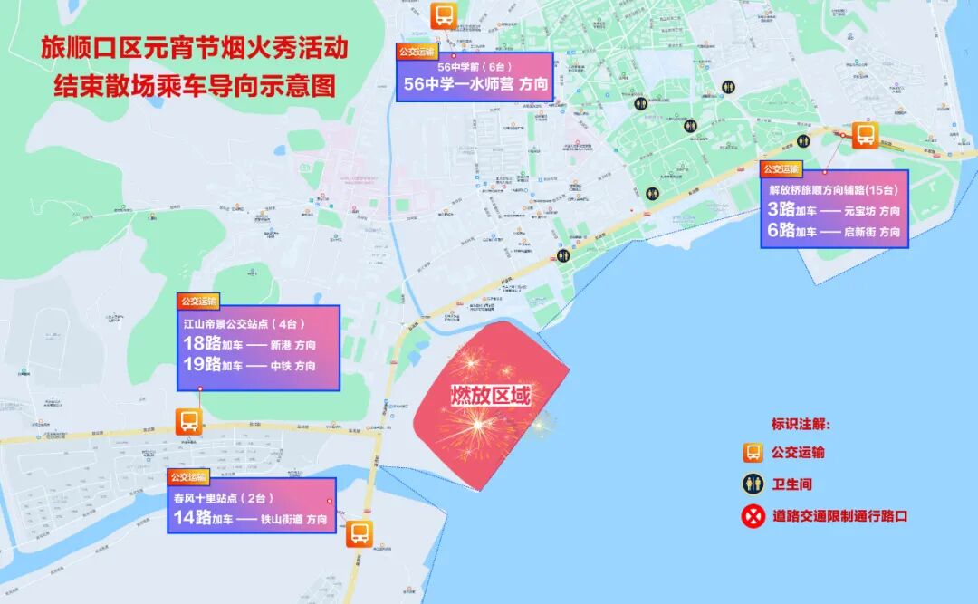 旅顺口区首届新春灯会烟花燃放活动,将于2023年2月5日19时举行。烟花燃放活动地点位于旅顺口区友谊路辽宁航海运动学校西侧围挡空地京能地块。为保障活动顺利进行,确保活动现场及周边交通安全,根据《中华人民共和国道路交通安全法》第三十九条之规定,活动期间将对部分道路分时、分段采取临时交通限制措施。现通告如下: