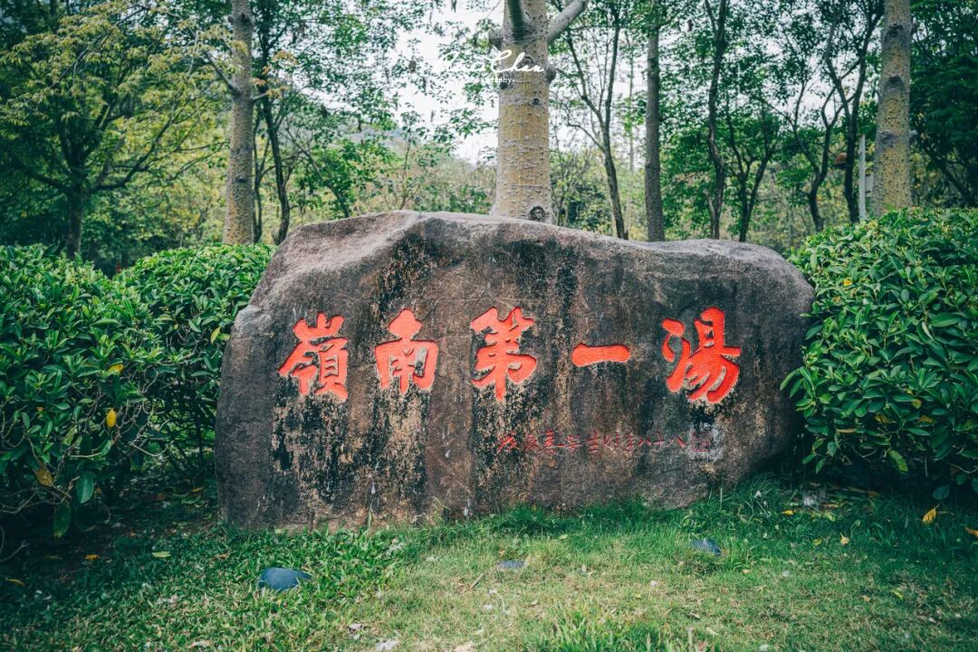 惠州中海汤泉的温泉也是官方盖戳认证的「真温泉」,属于碳酸钠钾型温泉,温泉水终年不竭,日流量1,000吨以上,水温高达72℃,富含30多种微量元素,具有较高的浴疗价值。著名书法家秦咢生还在这里写下了「千年东坡泉,岭南第一汤」,「岭南第一汤」五个字就刻在进门口的大石头上。