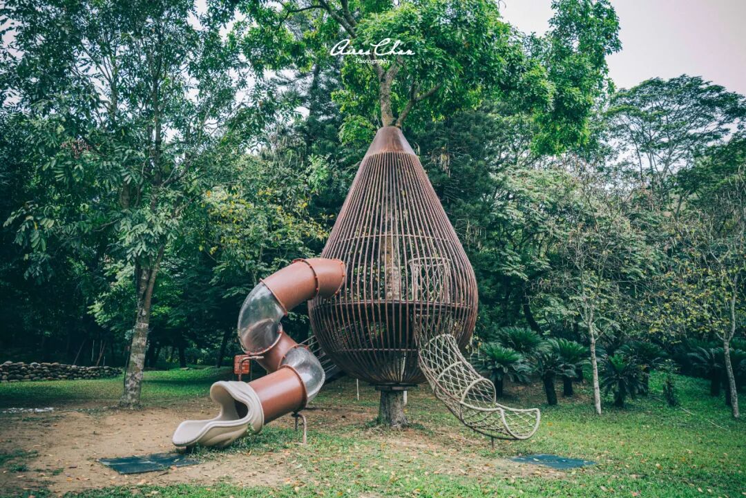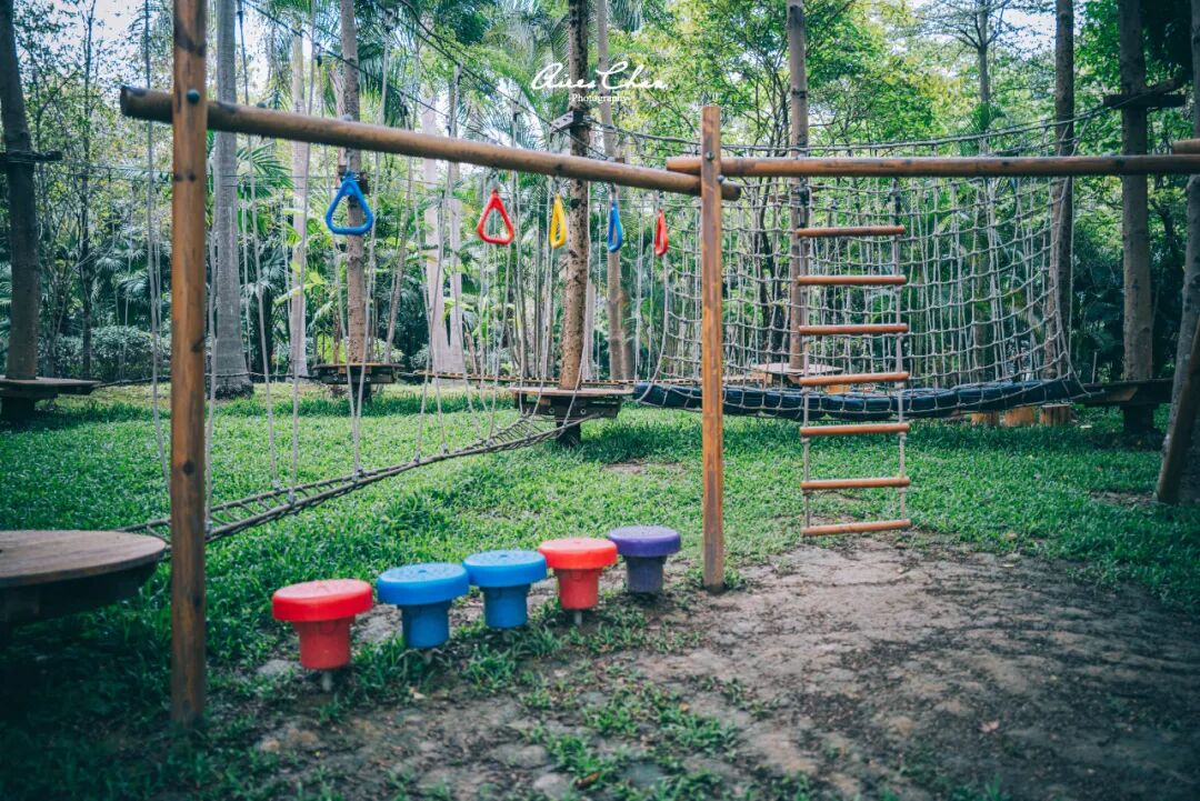 这里还有一个挺大的室外儿童乐园,有儿童秋千、滑滑梯、休闲藤摇椅、攀爬类等设施。