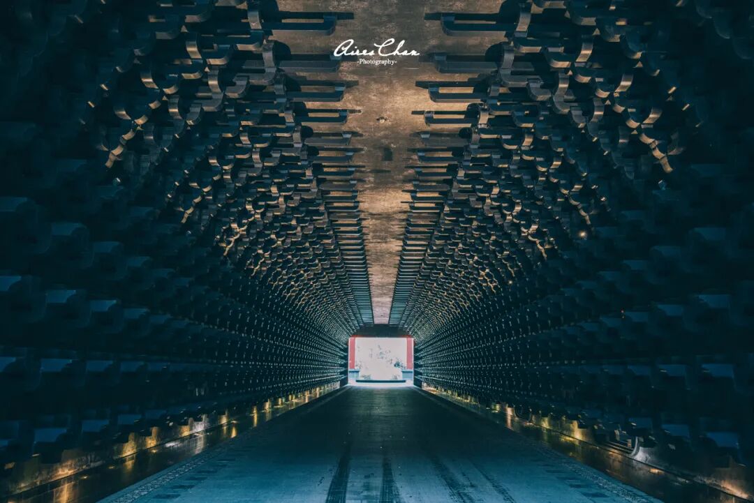 整个时光隧道的设计原理由中国传统建筑的符号和时间元素组成,隧道内有七个「门庭」,分别代表北宋、南宋、元、明、清、民国和现代七个时代,而隧道里的斗拱象征着「年历」,每经过一个意味着穿越了一年,共1,000个,走完全程即穿越了千年;出口的12根柱子代表一年12个月;隧道的弧形石墙是由云贵高原运来的高达8万多块的火山岩石手工砌成,象征着一天当中有86,400秒……是不是觉得仪式感满满?