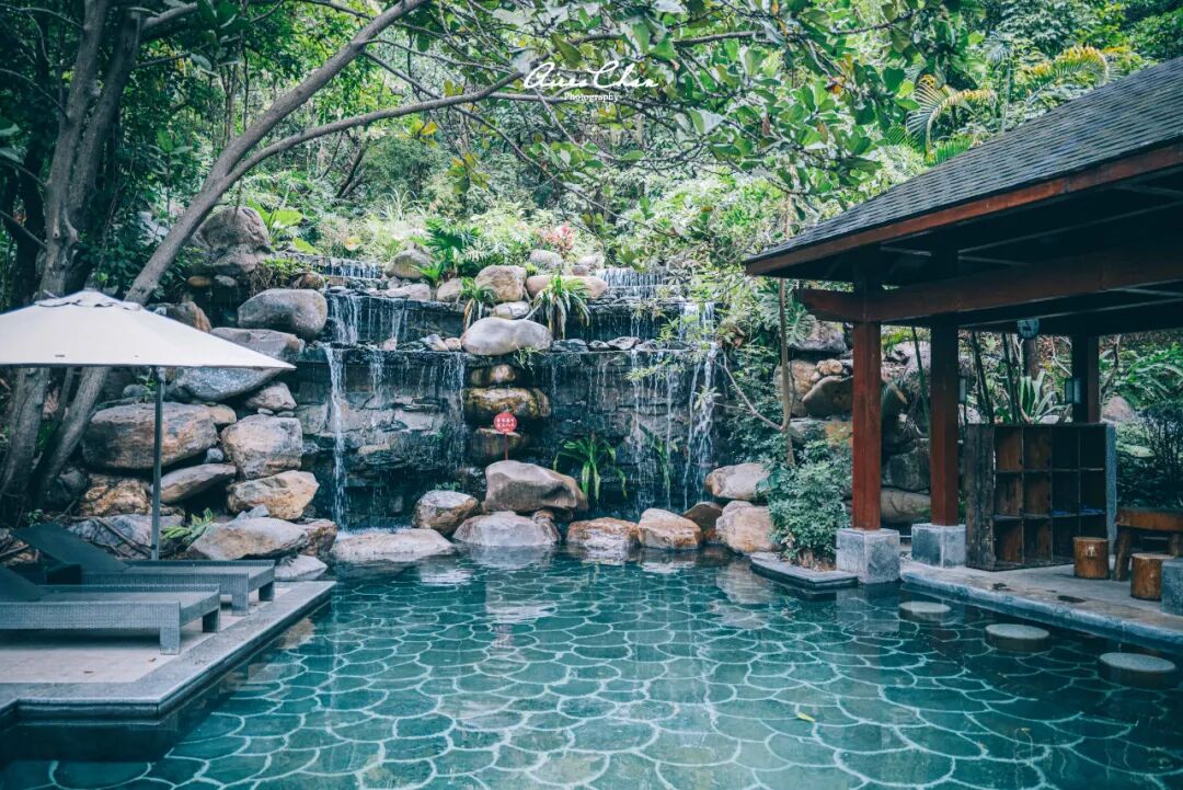 值得一提的是,酒店的无边际泳池与九龙潭瀑布融为一体,远望山林泉瀑,近听流水潺潺,等到丰水期水位上涨,景色更加怡人。这里还有一条小路可以登山,提前1天和酒店预约,会有工作人员带着你爬山,这个服务也是包含在套餐里的。