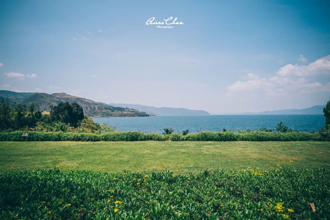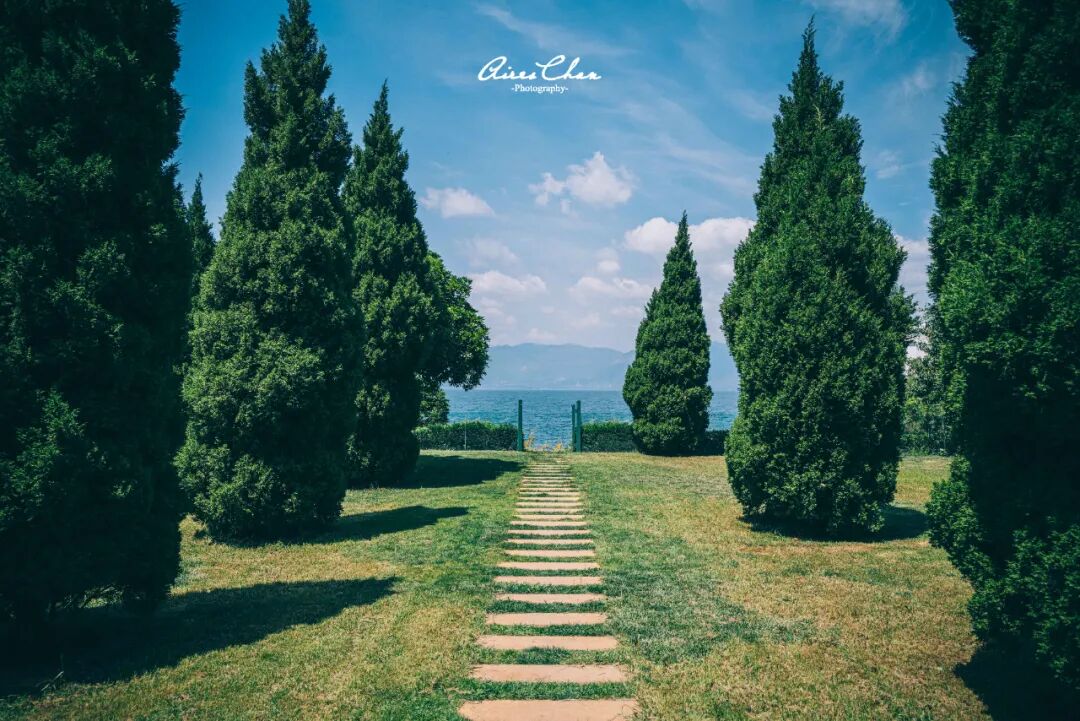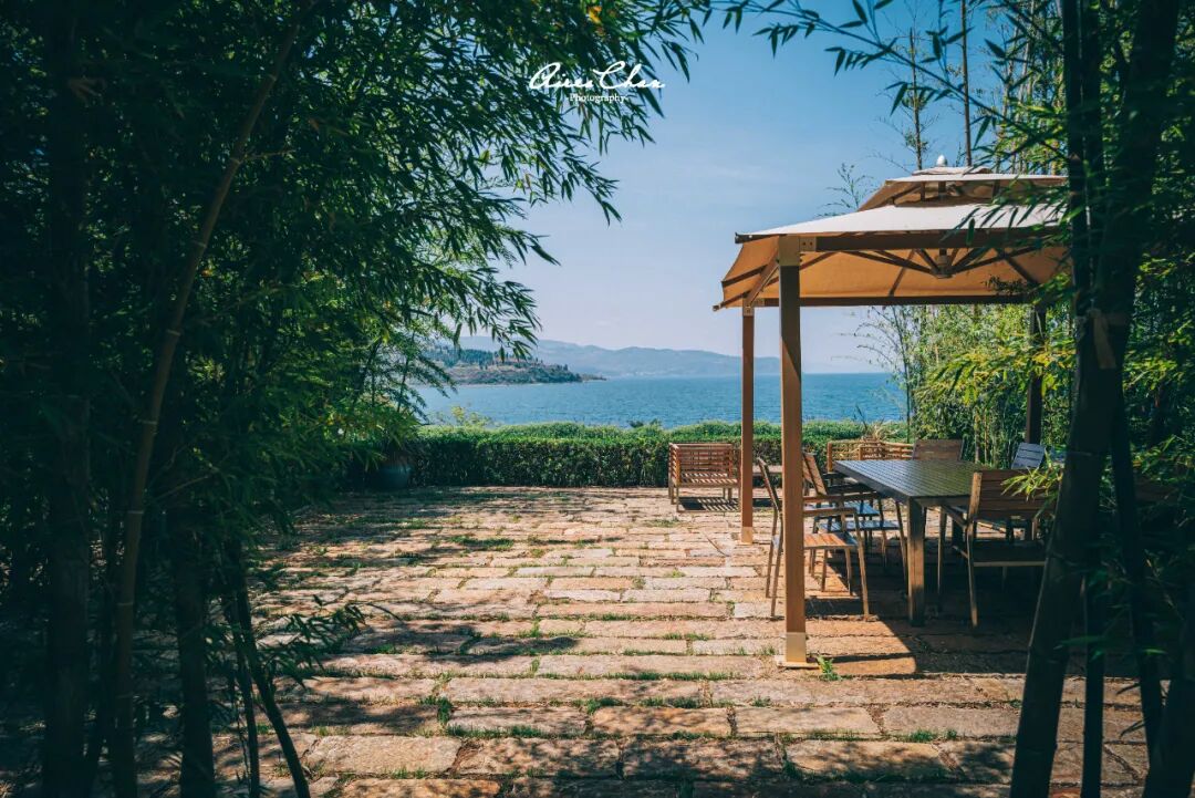 从这里走到抚仙湖湖边其实有一条小路,也就几百米的距离,顺着这里一直往下就能到环湖的栈道,但入口可能会锁上哦。酒店自家有一片很大的草坪,可以举办各种中小型活动,围着这个大草坪的一圈,还有一些休闲桌椅和一条长长竹林隧道,夏天要来个户外BBQ什么的,这里最合适了。