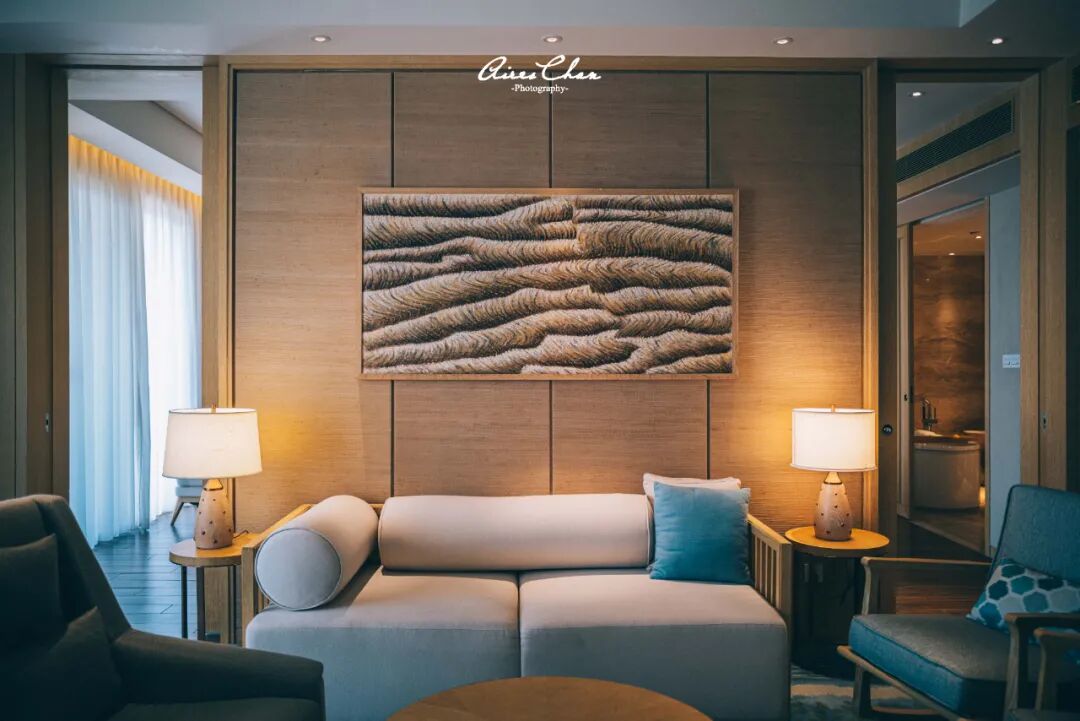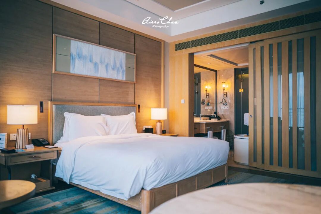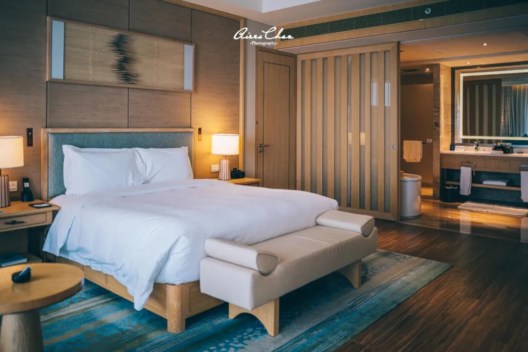 我住的是豪华单卧湖景套房,基本就是两间客房打通成一间的样子,CCD郑中设计事务所对于新中式风格的把控功力随处可见,没有花里胡哨的炫技,温暖的色调和温馨的氛围,将抚仙湖边的悠闲度假时光修饰得恰到好处。
