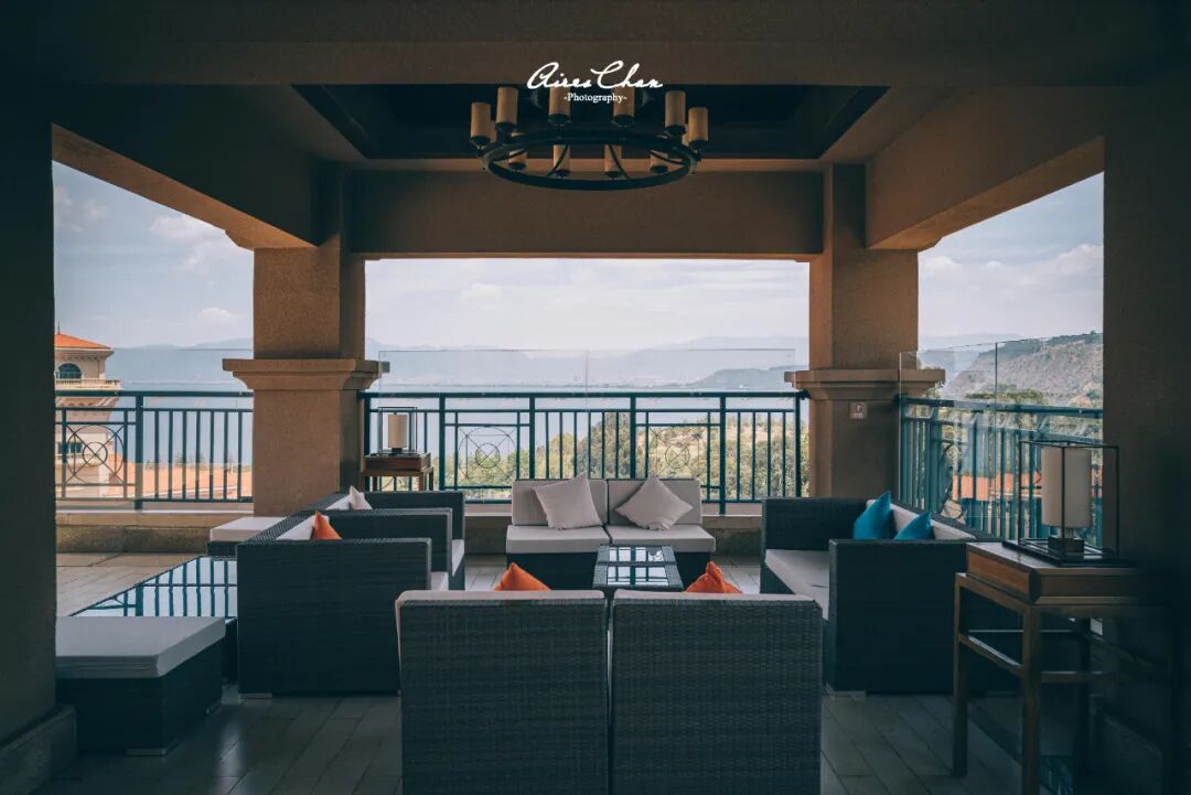 大堂吧还有室外的区域,抚仙湖四季如春的天气,坐在外面也不错。湖岸线100多公里的抚仙湖,远看真的像一片海,能在近距离把这片「海」一览无遗的露台,抚仙湖希尔顿几乎是独一份的。