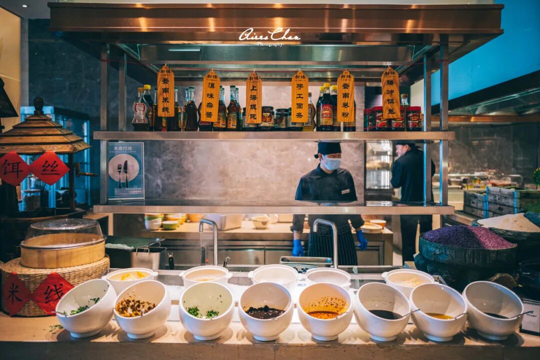 午餐可以试试这里的过桥米线,鸡汤鲜甜,配菜也很新鲜。