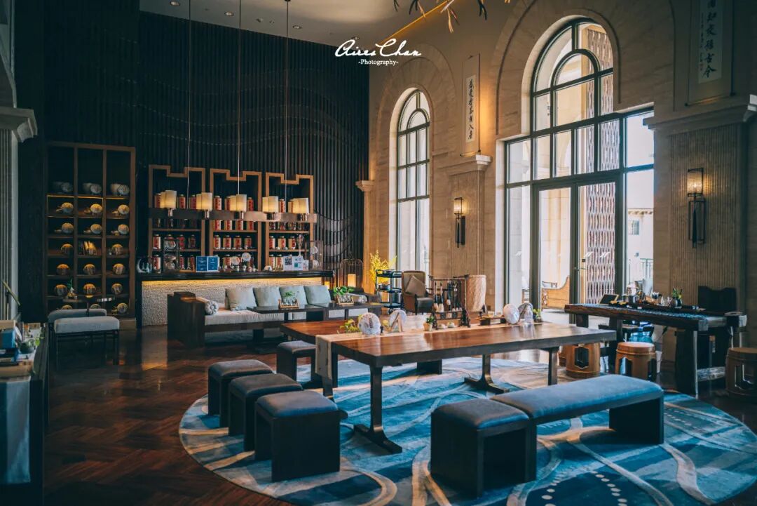再回到酒店的公区,大堂吧隔壁的茶室是另一处看湖景的好地方,室外的露台同样受欢迎,这里也会作为茶歇和一些店内小活动的举办场所。