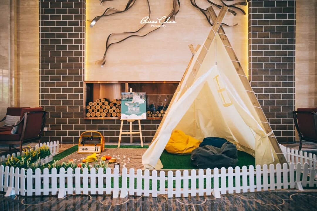 前台这个背景墙我是真的没看懂是啥,反正挺好看的;大堂还摆着小帐篷来说明这家酒店的亲子属性,当然,抚仙湖希尔顿在