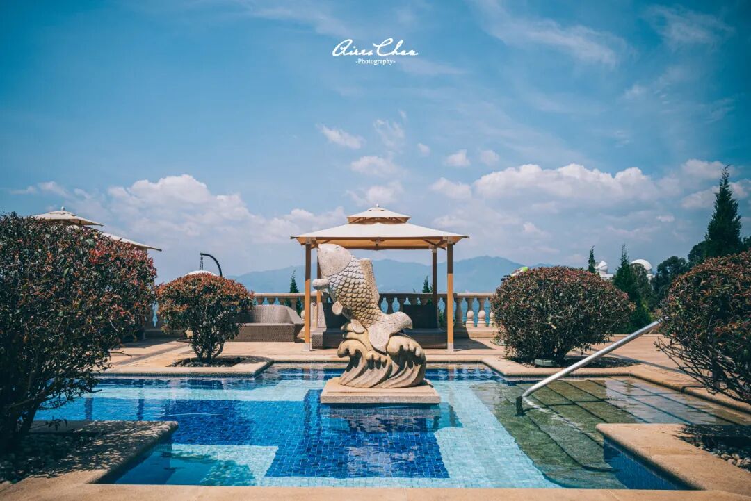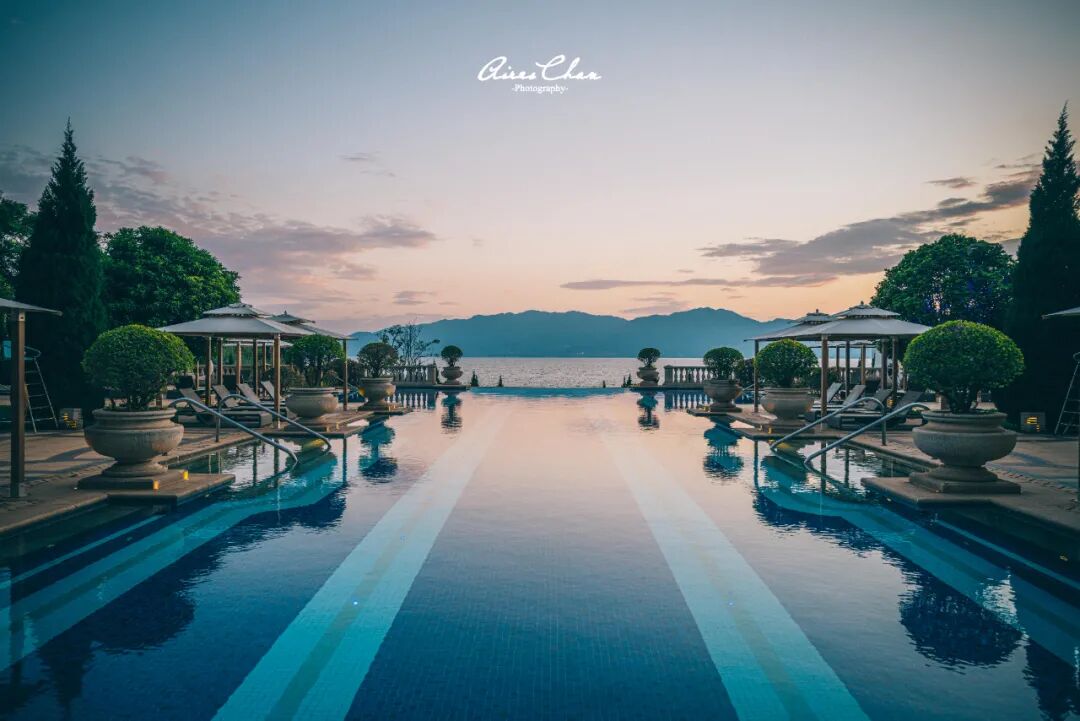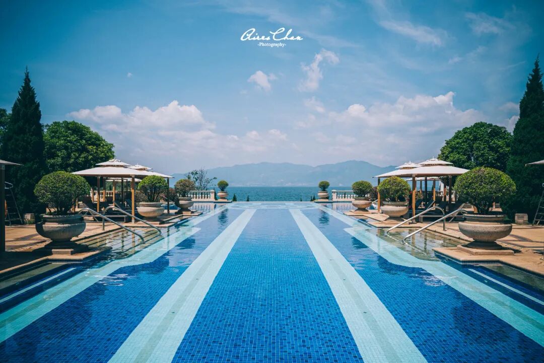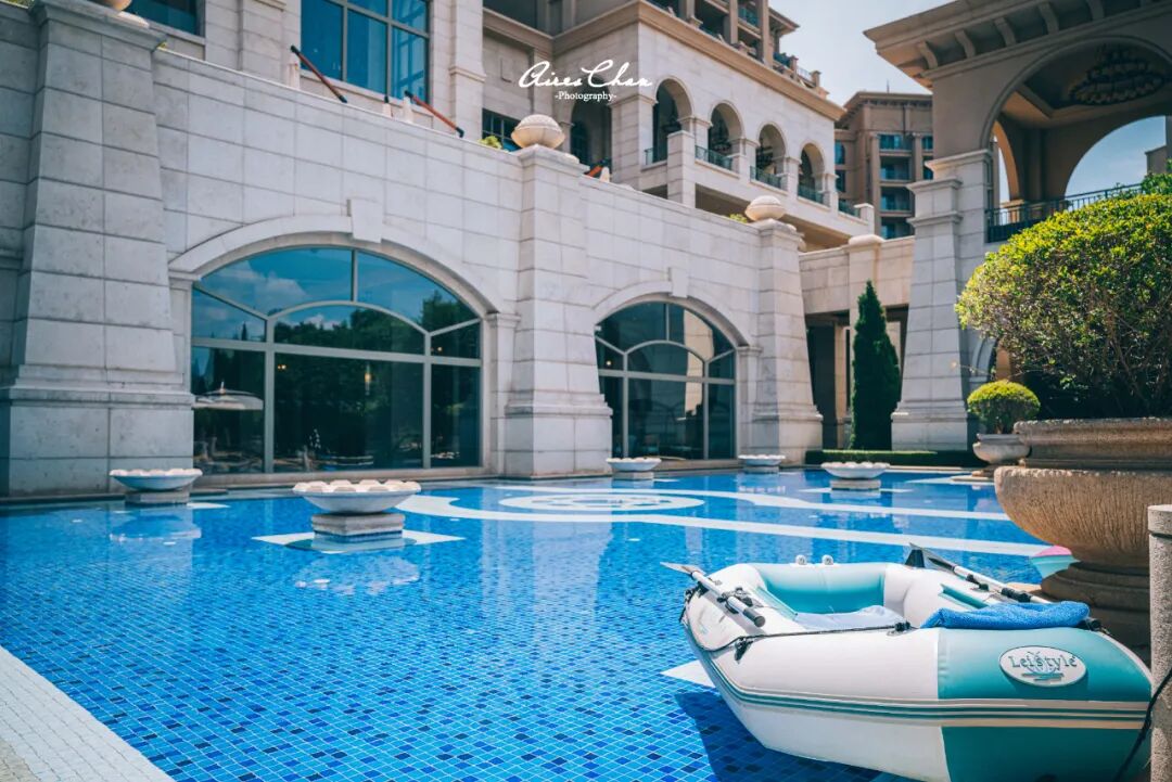 酒店的泳池一共有三个,室内、室外以及儿童池,室外泳池是整座酒店最能出大片的地方,这篇文章的封面和头图都是用的这里的照片。