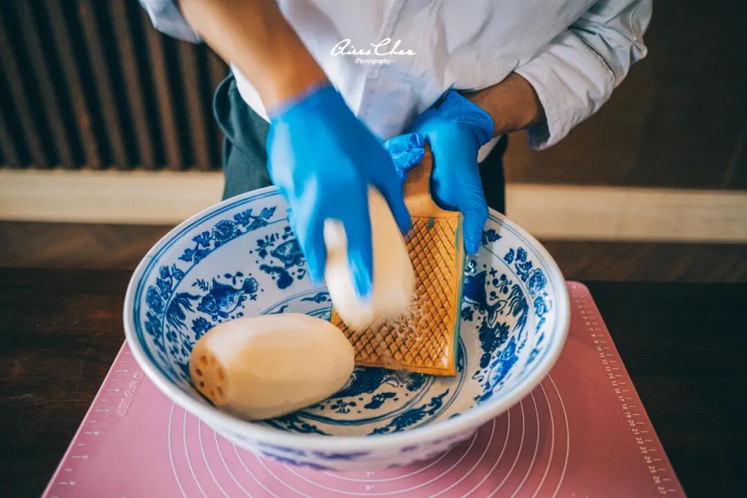 比如现场制作藕粉就是一个挺有趣的活动,在此之前,我对这东西的认知度几乎为零,拿着莲藕在搓衣板造型的器具上把莲藕一点点磨掉,再用滤网滤干净,最后就能马上煮成好吃的藕粉啦!