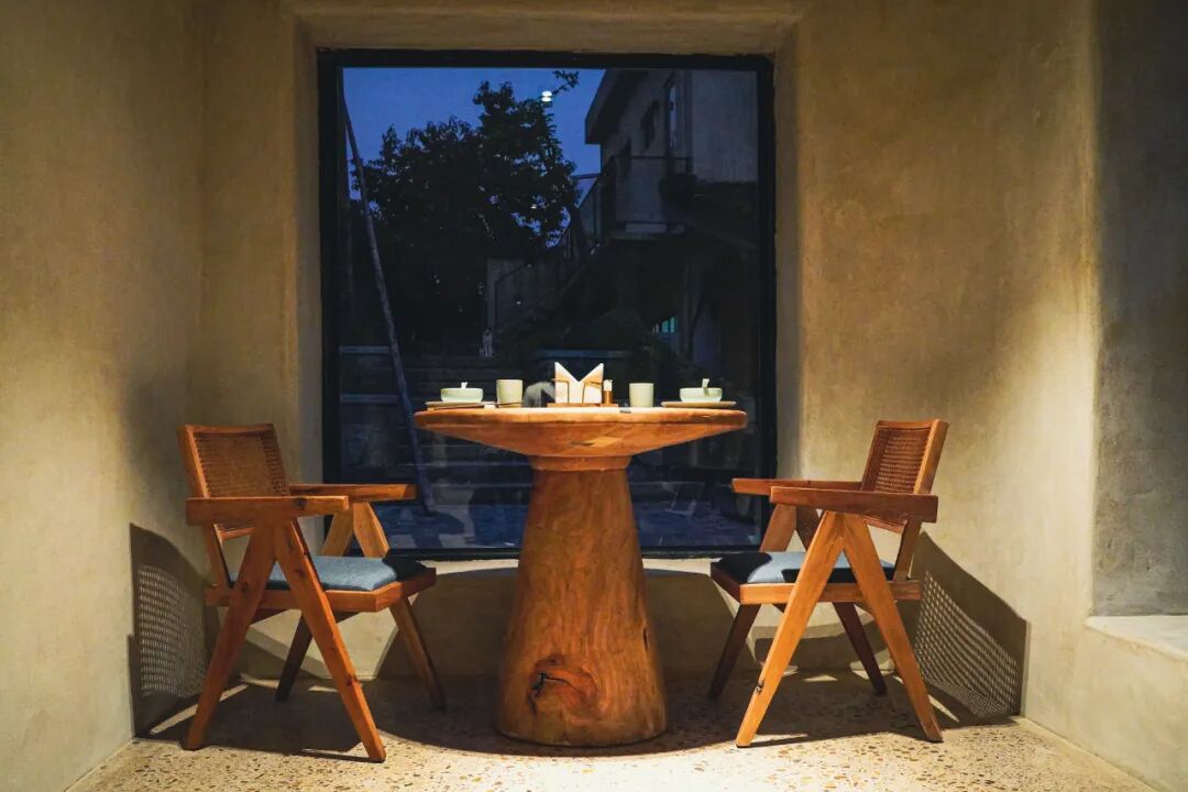 屋内的家具也很有特色,除了一些以前的老物件,大部分都是请常驻东阳的工匠师傅订制的实木桌椅,所以基本都是独一无二仅此一份的。