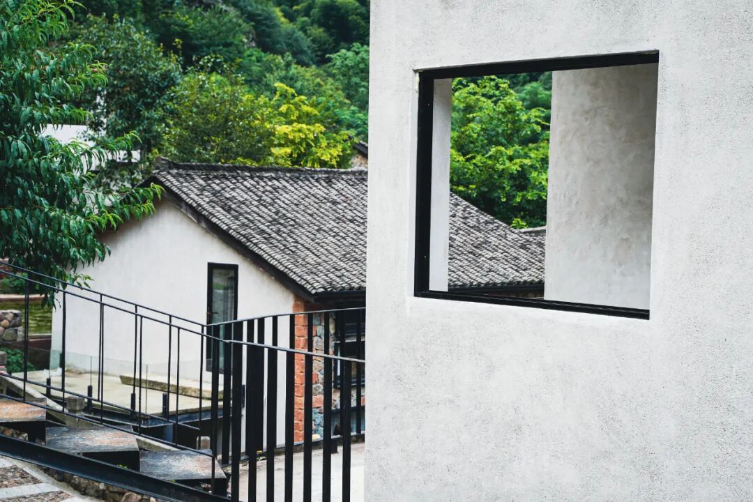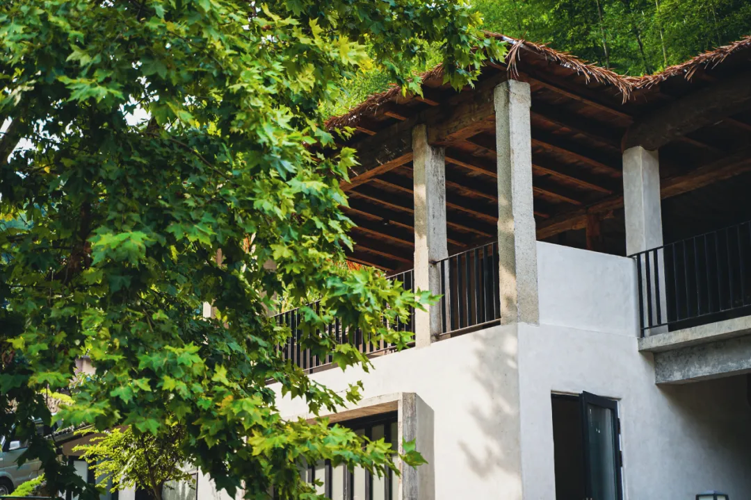 整个酒店保留了原有的古村落格局,像是长在山林深谷里。所有建筑都沿着溪流错落分布,采用山野开放式格局。目前只开放了第一期的30多间房,未来二期建设完成,会扩展到80多间,面积近2,000亩,所以会看到很多在建设中的建筑,比如瀑布边的崖壁健身房,建完估计会很有看点。