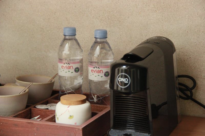 房间mini吧是免费的,里面至少标配了9罐(或10罐)软饮,果汁、汽水、气泡水和啤酒都有,矿泉水给的也是依云。房间配了胶囊咖啡机和精选的差,想喝啥都有,另外桌上的茶具也挺好看。