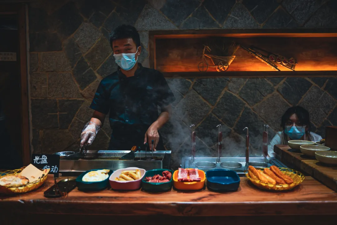 早餐是自助的,中西菜式都有,种类丰富。比较特别的是餐厅直接整了一个烤炉,现场提供本地特色的金华烤饼,光闻着就非常诱人了。