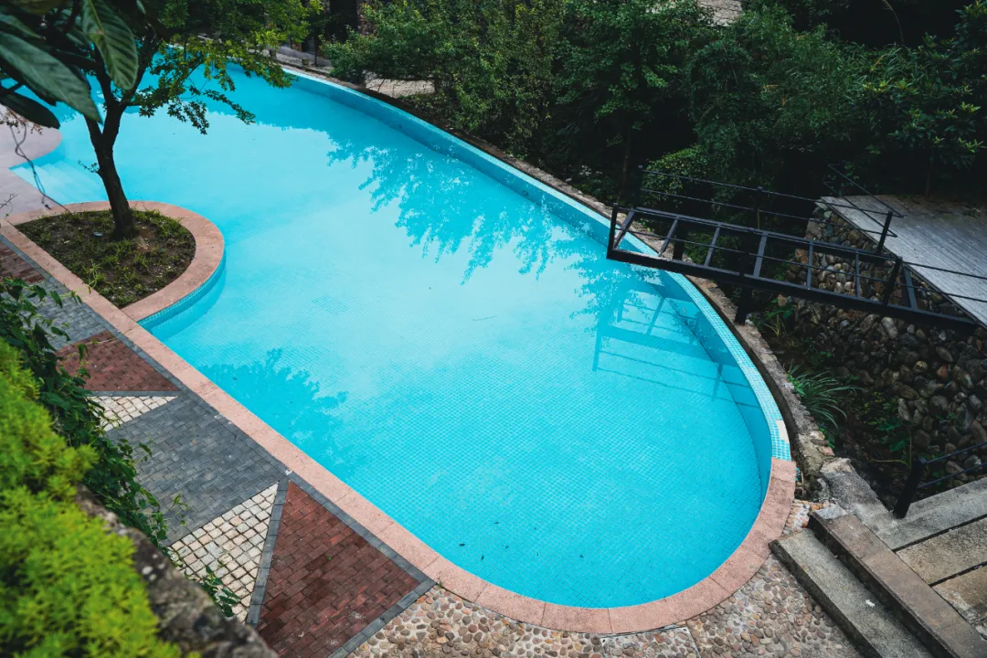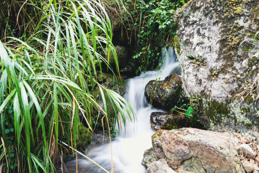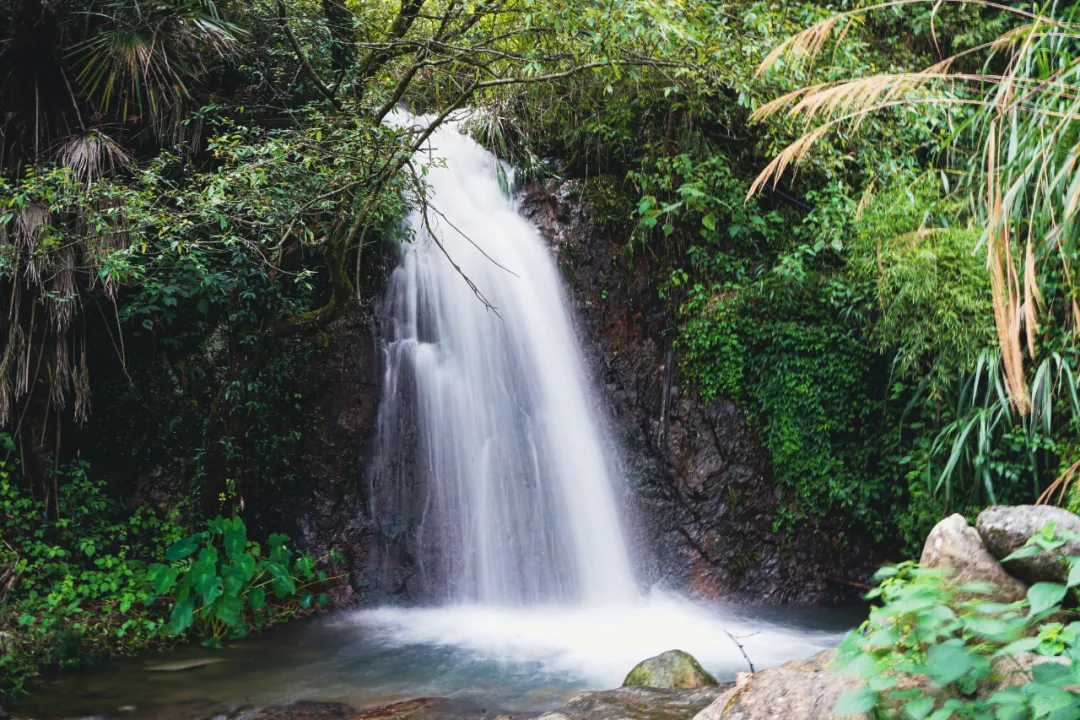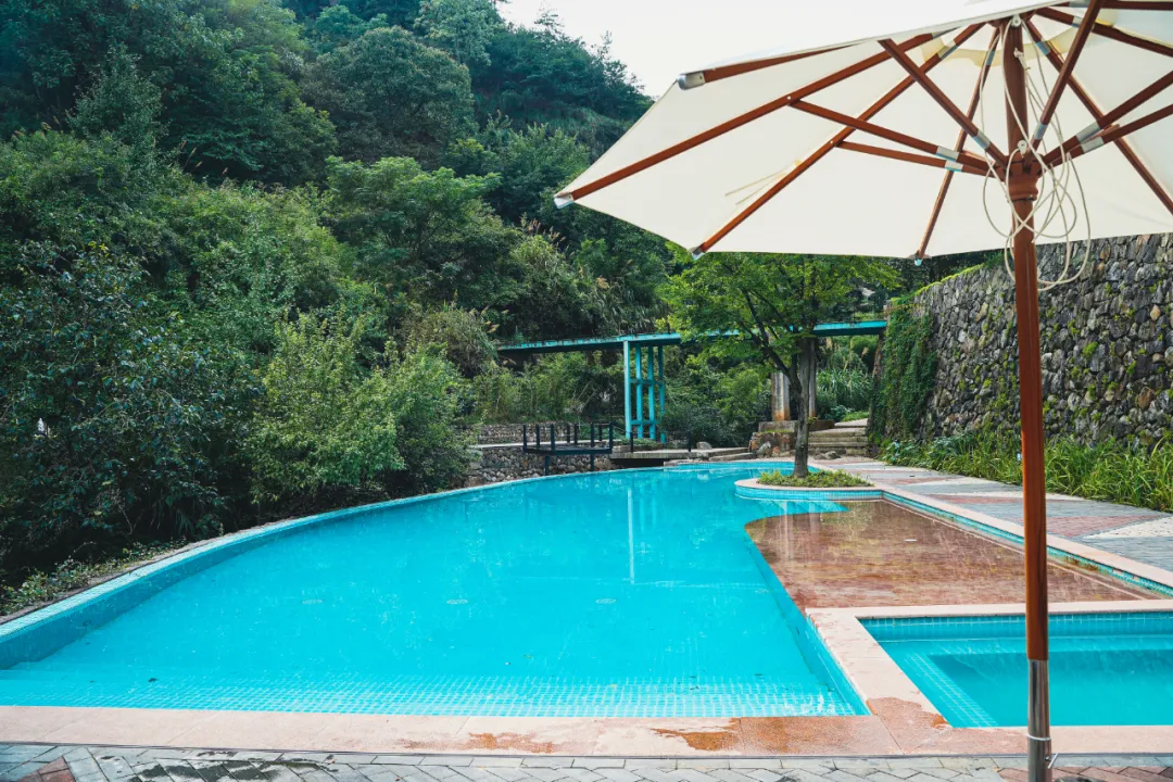 公区部分还有一个山谷无边泳池,也是热门的打卡地之一。穿过泳池,暗藏玄机。沿着溪边的小路走到底,天然的瀑布就挂在崖壁上,溅落成一方碧潭。