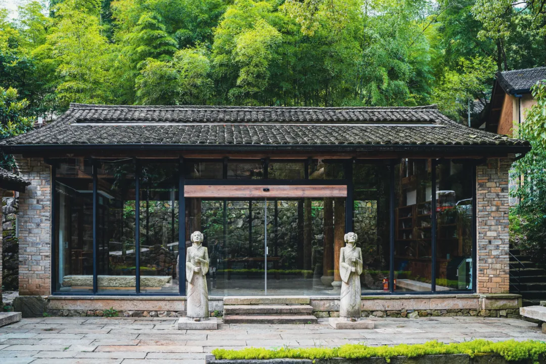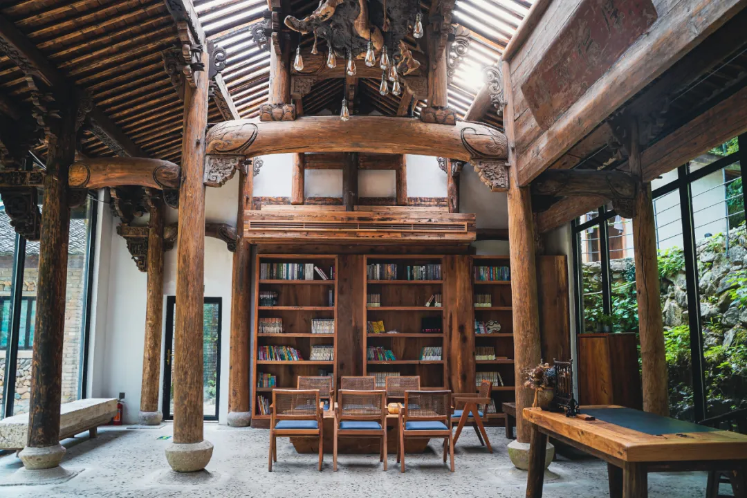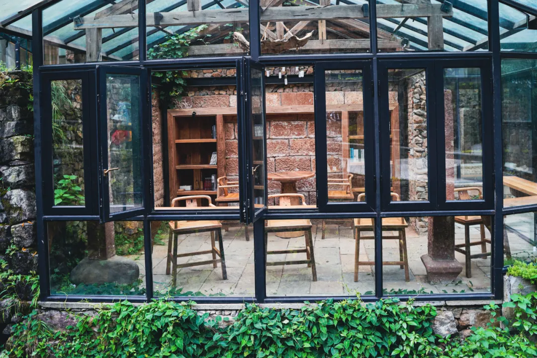 到了周末,这里还会举办很多文化的活动。除了书法,还有金华婺剧、问道太极、婺州窑瓷,以及专门为小朋友开设的小小鲁班课。不过,我觉得来这里,就算什么都不做,享受返璞归真的舒适生活也足够了。旁边还有一间不大的书吧,开窗朝外,正对溪流,不管是拍照还是看景都非常不错。
