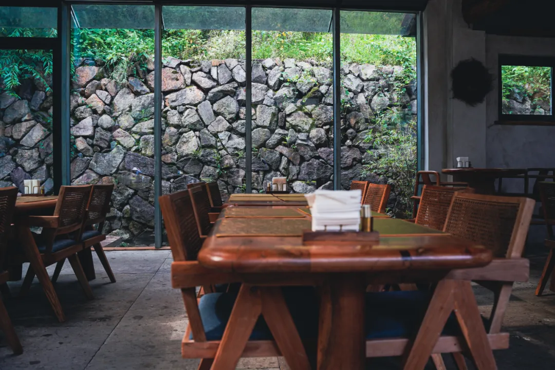 每一幢房子都有一个极其诗意的名字:不空、云生、重野、明夷……除此之外,还有两间餐厅、生花书院、森林咖啡馆(暂未开放)和山谷泳池。有山、有村、有矿、有溪、有瀑布,酒店本身就可以算个风景区了吧。