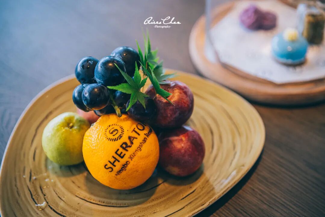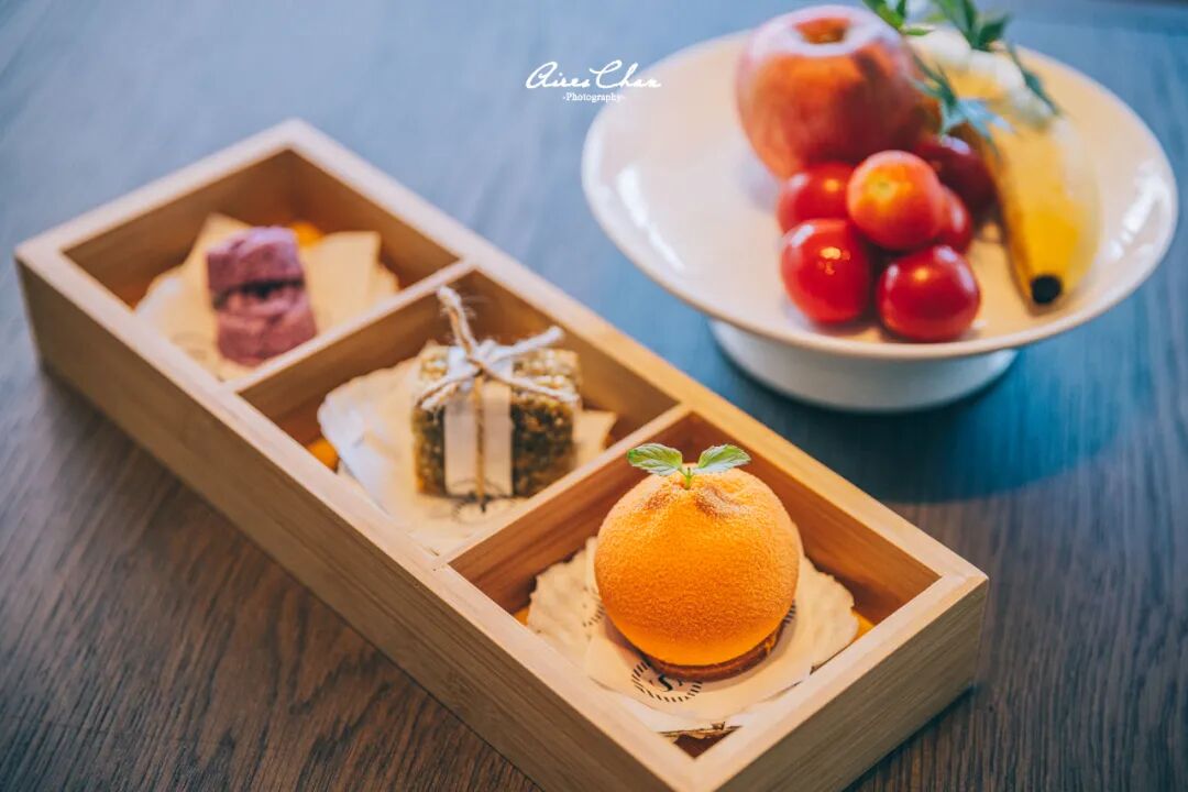酒店的欢迎水果和点心也很用心(不同的客户等级会有区别,以实际入住为准),尤其是国家农产品地理标志产品象山红柑桔造型的蛋糕,实在是太可爱了!