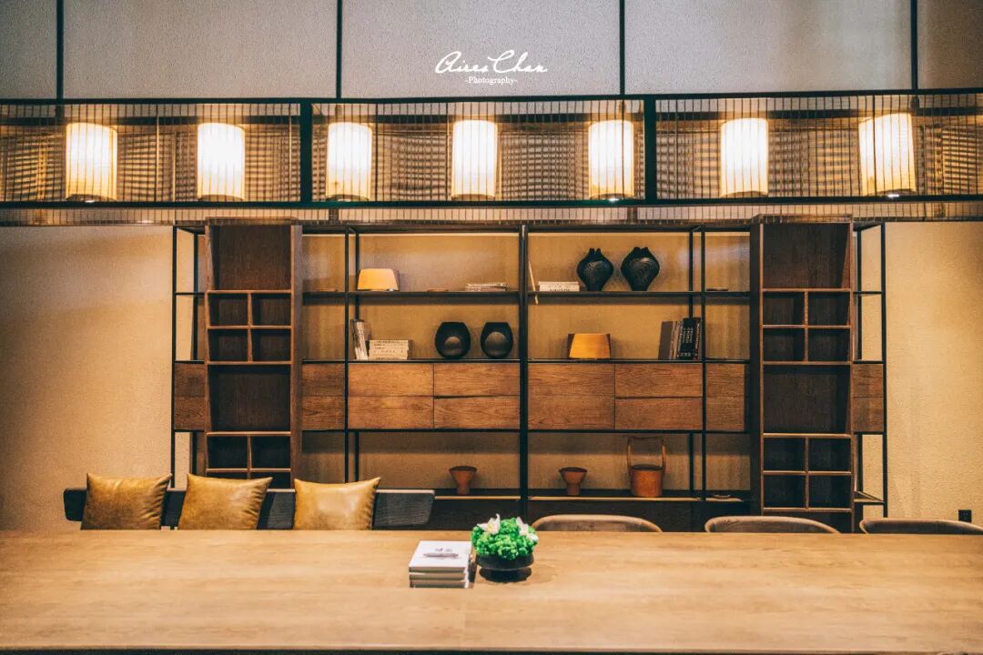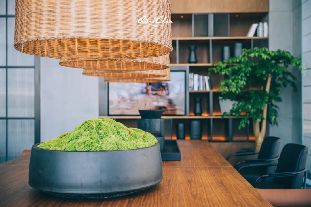 The Studios工作室也位于度假酒店的大堂,装饰搭配风格简约而鲜明,作为畅享工作或交流的空间并没有浓墨重彩的大肆渲染,而恰恰是将设计者的巧思合理展现在细枝末节,比如鱼篓型的灯罩,石林、礁石等海岛元素的石头摆件,渔网元素的铁网等等,最大限度地放大了自由与舒适的感觉。
