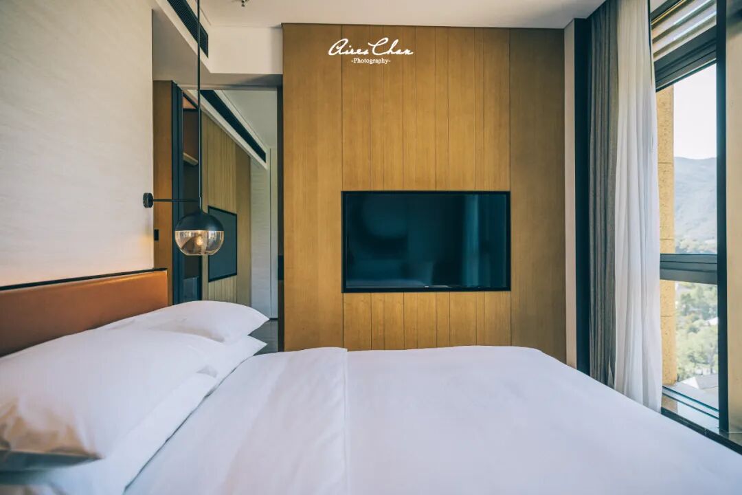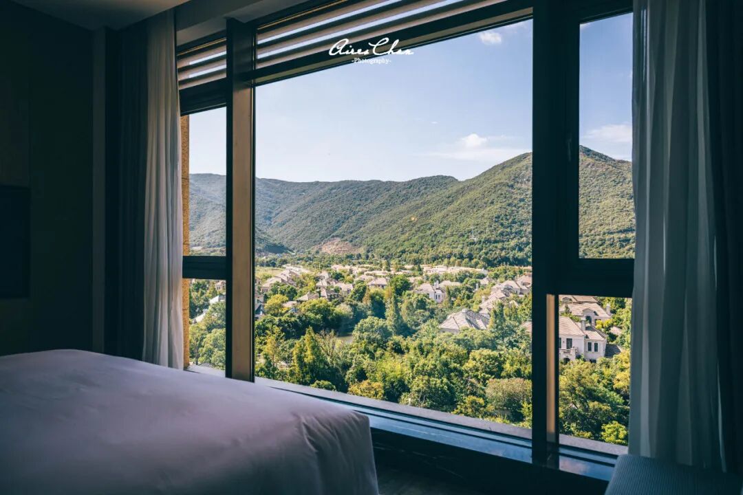 山景房外面的景观是这样,不过这几张图是第三级的房型尊贵房,面积65平米,在其他酒店已经可以算是套房了,起居室和卧室分离,衣帽间和淋浴间相互独立,同时带有双盥洗盆,窗外的山景也非常不错。