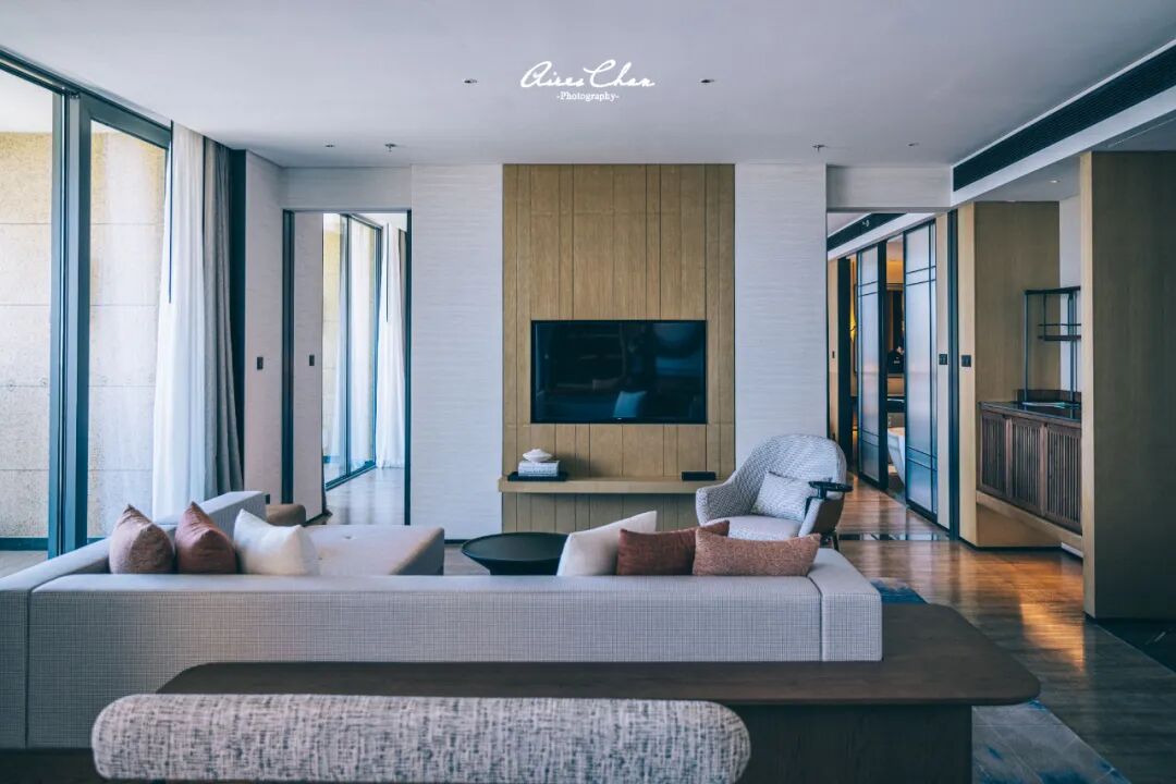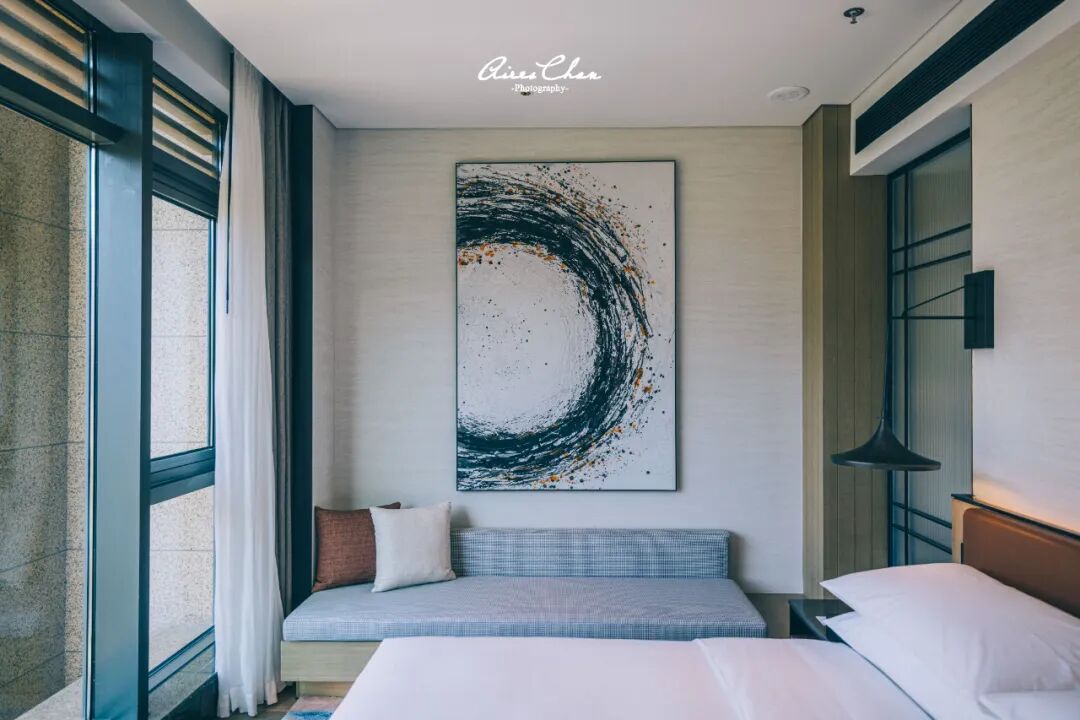 客房内以柔和的饰面和浅木色调为主,空间明亮通透的,营造出温润典雅的居家之感。每间客房都有落地窗,大部分客房还设有户外阳台,区别主要在于景观,海景或者山景、园景房景致都不错。