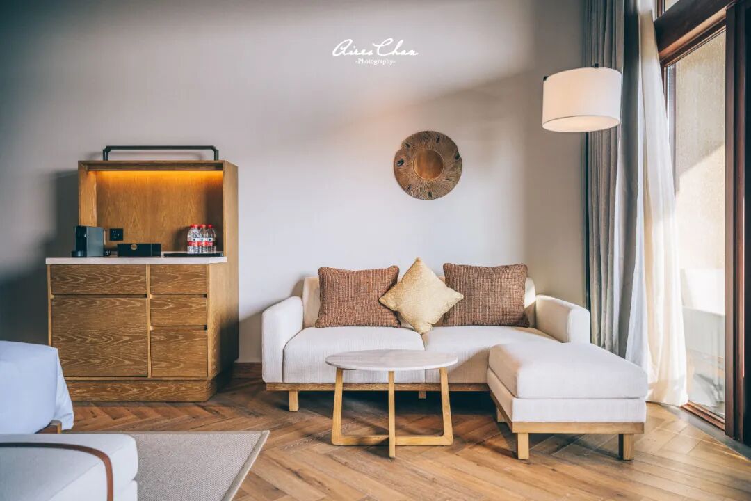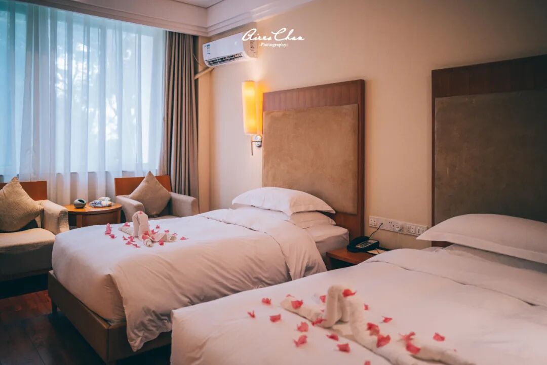 53平米的客房是我个人很喜欢的调调,房间内饰以米黄色和原木色为主,简约的居家度假风,装饰画也都和海南本地文化相关。目前已经可以看到,基础房含早的价格是1,798一晚,嘉宾轩客房2,498一晚,套餐2,788两晚,非常划算!