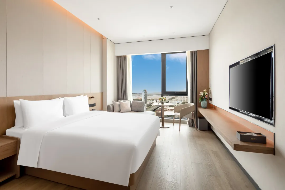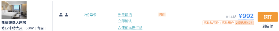 这次套餐给的是一个高阶房型,58平米的凯骊臻选大床房,一些客房是带有小阳台的,日历房价格接近1,000一晚。