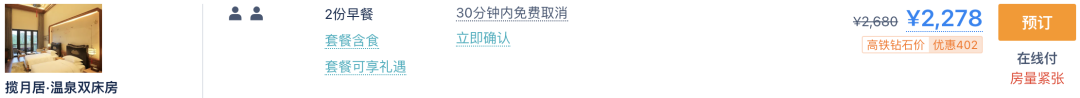 这家12月周末的日历房已经去到2,500+了,套餐周末可用不加价,圣诞节也OK,基本就是5.5折的水平。关于酒店就不展开了,感兴趣的去看体验文会更详细。