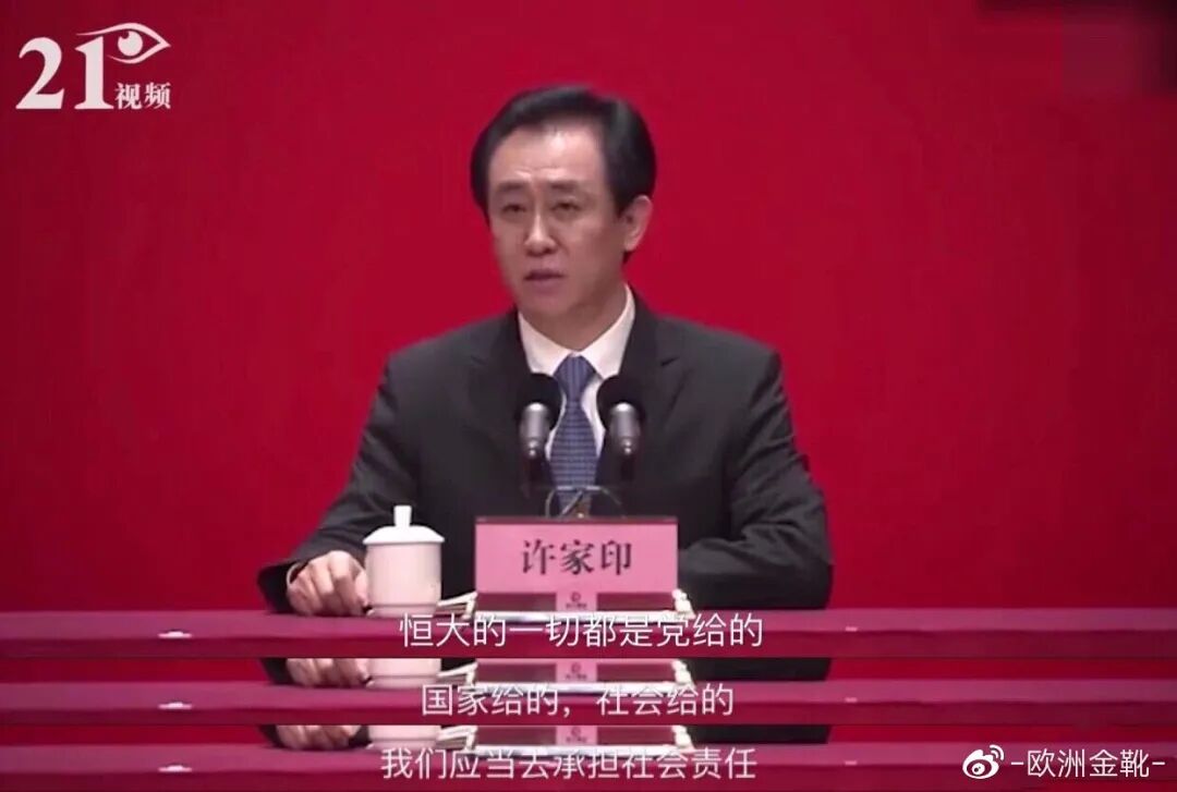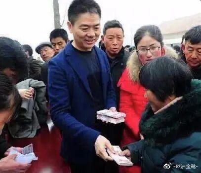 从河南家乡到贵州毕节,“该花的钱一分都不能省”,这是许老板不变的信条。2018年2月,恒大集团内部总结会,许家印大秀“政治觉悟”,一度登上热搜。他深谙中国政商规则的内律,更明晰“活下去才是王道”以及如何才能活得久的真理与方式。所谓“富贵不还乡,如锦衣夜行”。这样的戏码,京东集团创始人、财富峰值时曾闯入中国内地富豪榜前五的刘强东,也在江苏宿迁的农村老家玩过。2015年春节,彼时还未受到明尼苏达案侵扰、处在事业顶峰的“大强子”,左手娇妻奶茶妹、右手千万大红钞,走在村里逢人就送、见人就塞。村里凡60岁以上老人,刘强东人手一万现金,不到一小时送出650万,好不阔气。这一切,也被当时已经稳居地产老大地位的许家印看在眼里。去年年末的那次返乡,带着发妻回到河南聚台岗村的许老板在老乡的围拢中,对着户口本给全村每家每户都发了3000块现金,外加2桶油2袋米,还拜访了自己曾经的老师,并在卧榻前当即指示手下:“给一套房,赶紧的。”欢声笑语间,现金发出去了足足500万,粮油米面堆积如山,冬日里的中原大地温意满满。10、政治嗅觉or政治资源