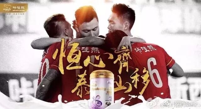 子公司的成长离不开足球的平台影响力,但是那个赛季恒大队最终在亚冠止步八强,“恒大粮油”也没能进一步扩张声誉。于是,2014赛季的中超联赛便自然而然地成为了恒大集团唯一的营销战场。2014年10月26日中超第28轮,举世瞩目的京穗天王山战役,恒大只要在主场战平曼萨诺的北京国安即可提前两轮夺冠。该役一票难求的天体爆满,媒体席和观众席的人员几难移动。然而就在恒大与国安球员出场时,聚焦本场比赛的全国观众再一次发现:恒大球衣广告㕛变了!恒大咔哇熊婴幼奶粉正式宣告问世,雷翻众人。恒大集团于2014年9月收购新西兰咔哇熊乳业,此次入主是中国企业首次收购国外著名乳业企业,咔哇熊也成为又一家进入中国市场的国外高端奶粉品牌。