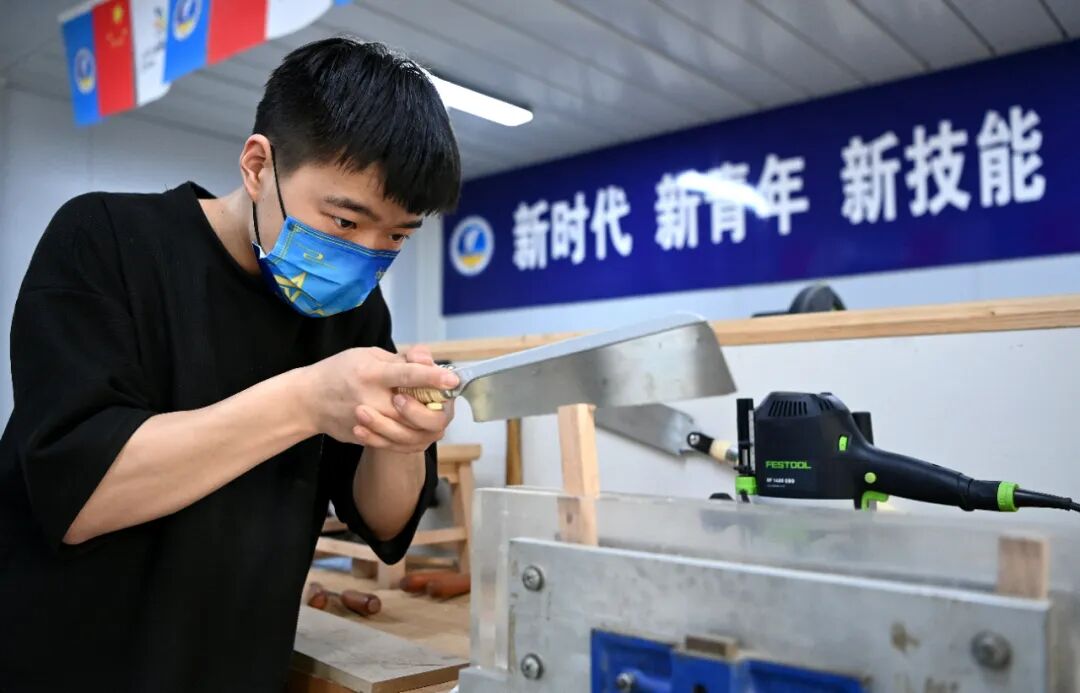 西安建筑工程技师学院学生在进行精细木工项目训练 图片来源:新华社