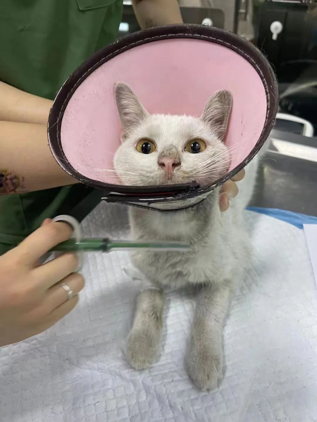 我身在的黄浦区豫园街道,当时还没封闭。虽然离嘉定很远,但还是决定马上出发。由于路途遥远,且嘉定区部分道路已被封锁,不确定是否能如时到达,种种权衡,主人决定先叫闪送电动车师傅把猫妈妈送往医院。但我想,如果是自己的猫出事了,没人陪,肯定很担心,且涉及不止一条生命,于是便转道去医院。到达后,医生正在为猫妈妈拍片,说肚子里面还有四只小猫,两只生命迹象微弱,猫妈妈也出现了应激,需要马上麻醉剖腹产。但医生不能保证生出来的小猫一定能活着。在主人同意微信看过手术协议书后,医生马上开始了手术。最后猫妈妈顺利产下四只小猫并保住了自己的性命。由于家中还有一只白天出生的小猫等着猫妈妈的奶水,不能住院,医生便开了消炎药,等妈妈醒来稳定后,让另一位后赶到的嘉定志愿者小姐姐把她送上专车,运回主被人封闭的小区。