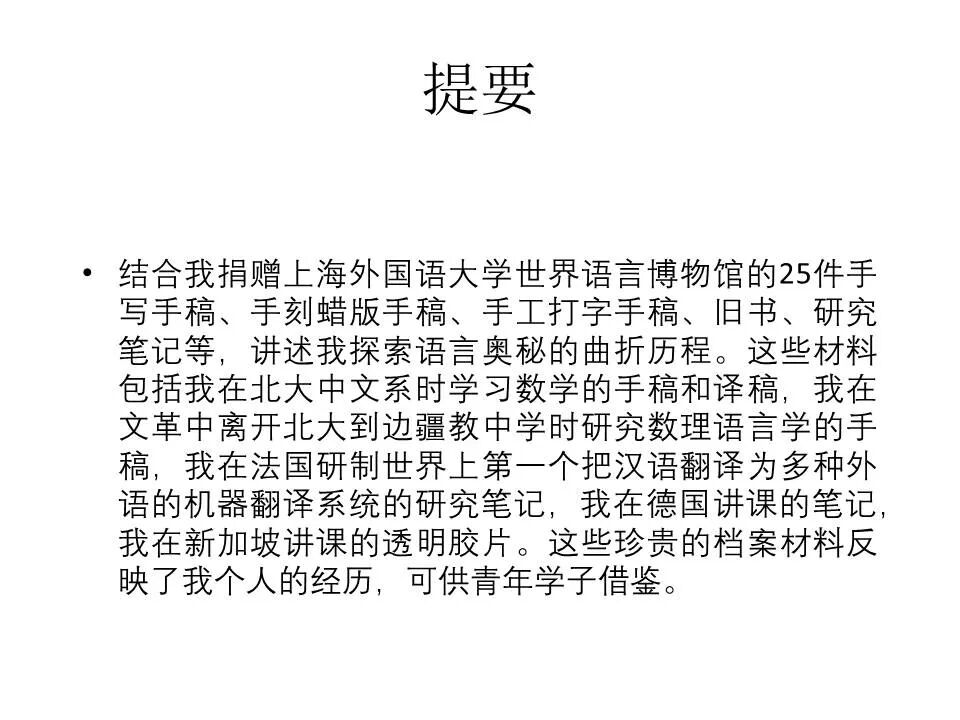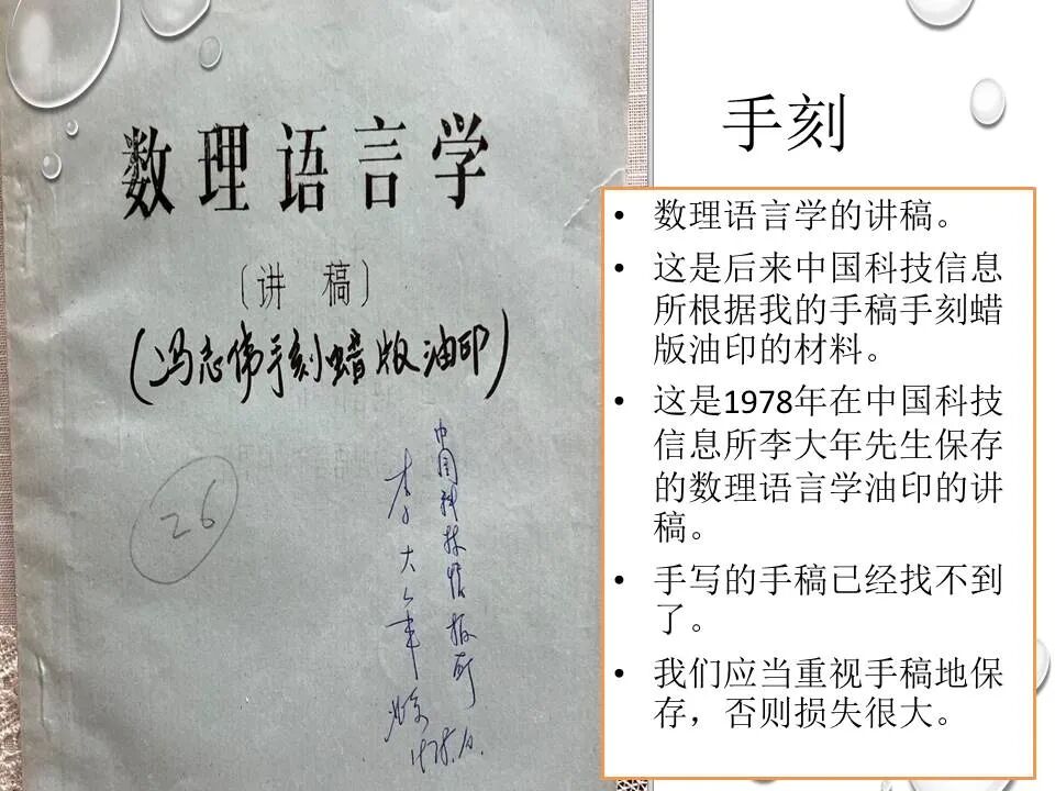 2022年6月9日,全国知名计算语言学家、教育部语言文字应用研究所冯志伟教授应邀做客上海外国语大学世界语言博物馆“兰台文博”云端讲堂,以捐赠给世界语言博物馆的26件手写手稿、手刻蜡板手稿、手工打字手稿、旧书、研究笔记等为线索,用回忆的方式,饱含深情地讲述其融汇文理思维、探索语言奥秘的人生历程。让我们跟随他的脚步,一起追忆往昔岁月,感悟家国情怀,永葆求索精神。