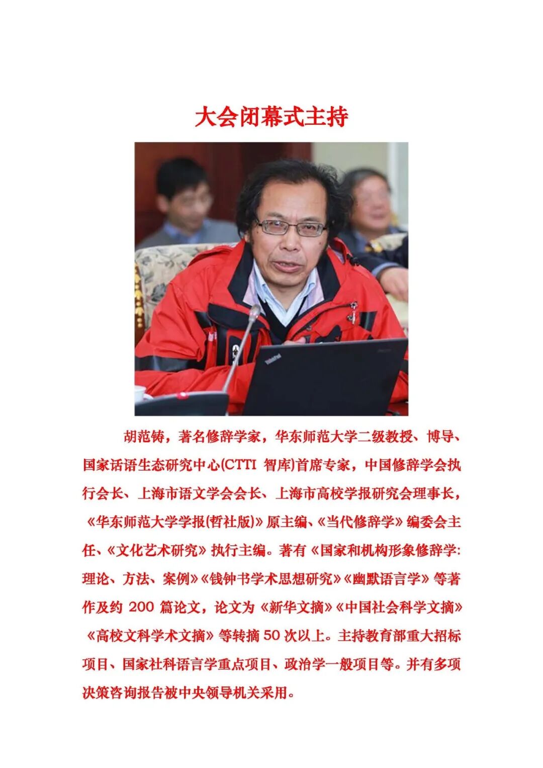 主旨发言专家(按姓氏拼音排序)