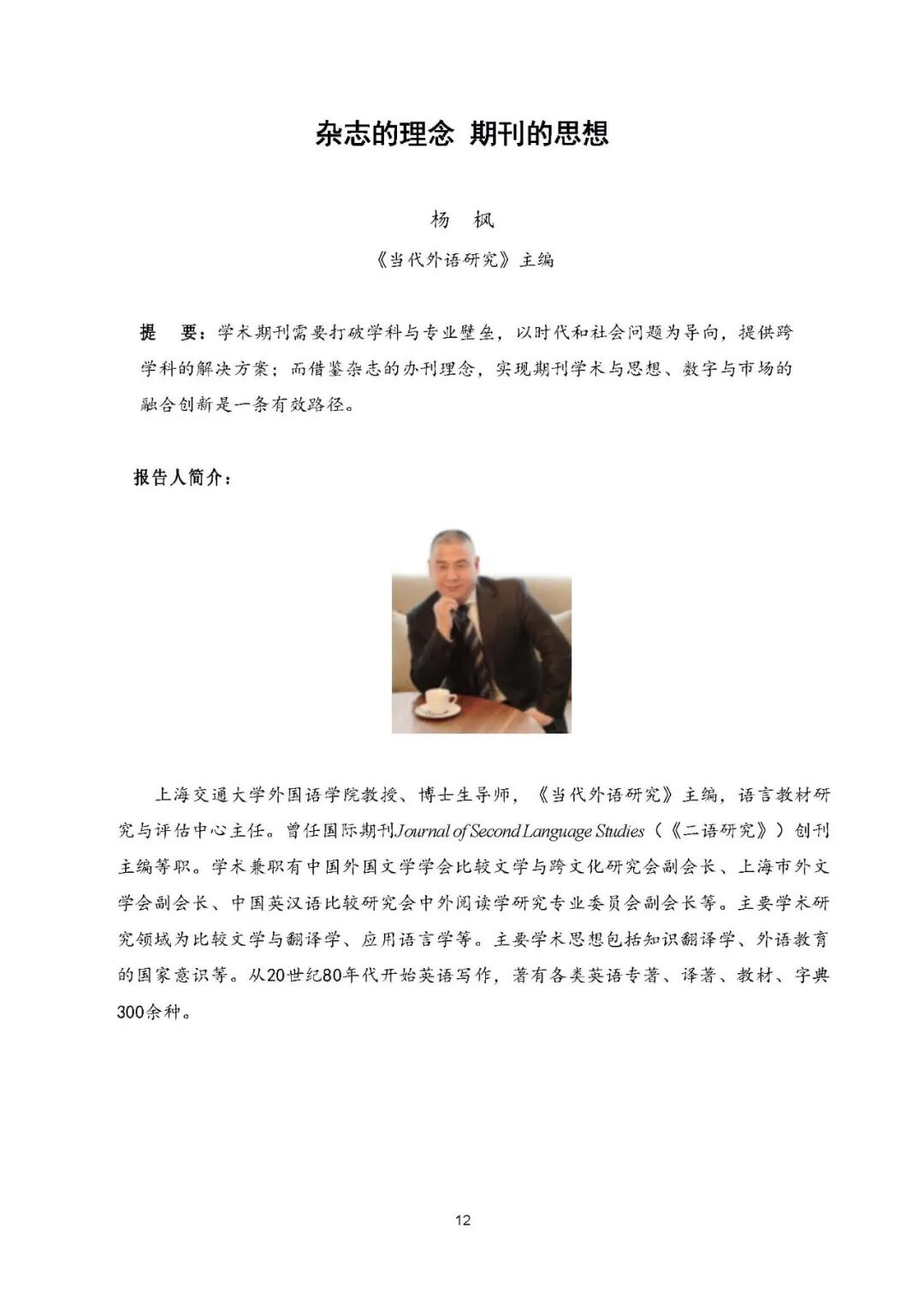 山东大学语言与文化传播研究中心主任,全国新文科教育研究中心副主任