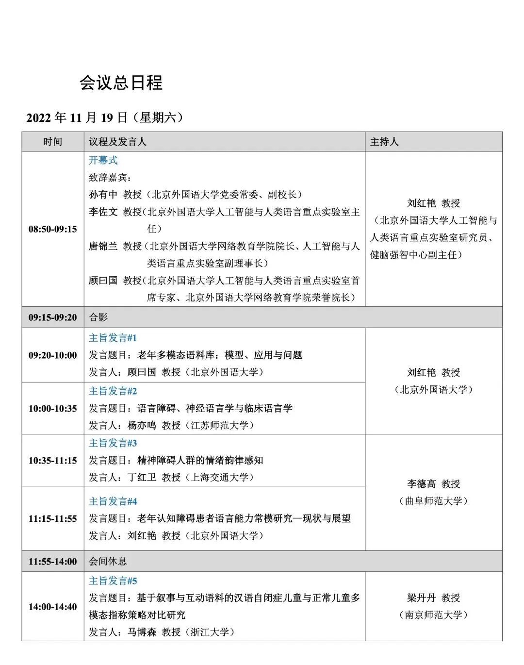 会议议程|第十二届全国语言文字应用学术研讨会@11月19-20日