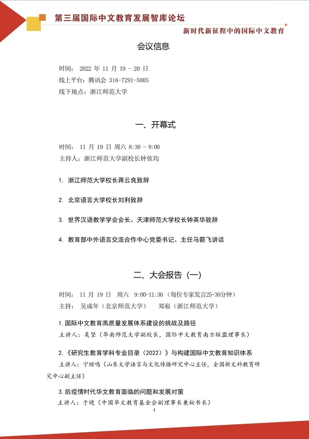 2022 年 11 月 19 日(周六)8:00-12:00·开幕式/专家论坛