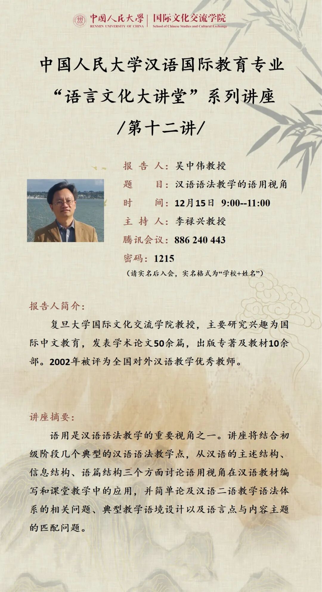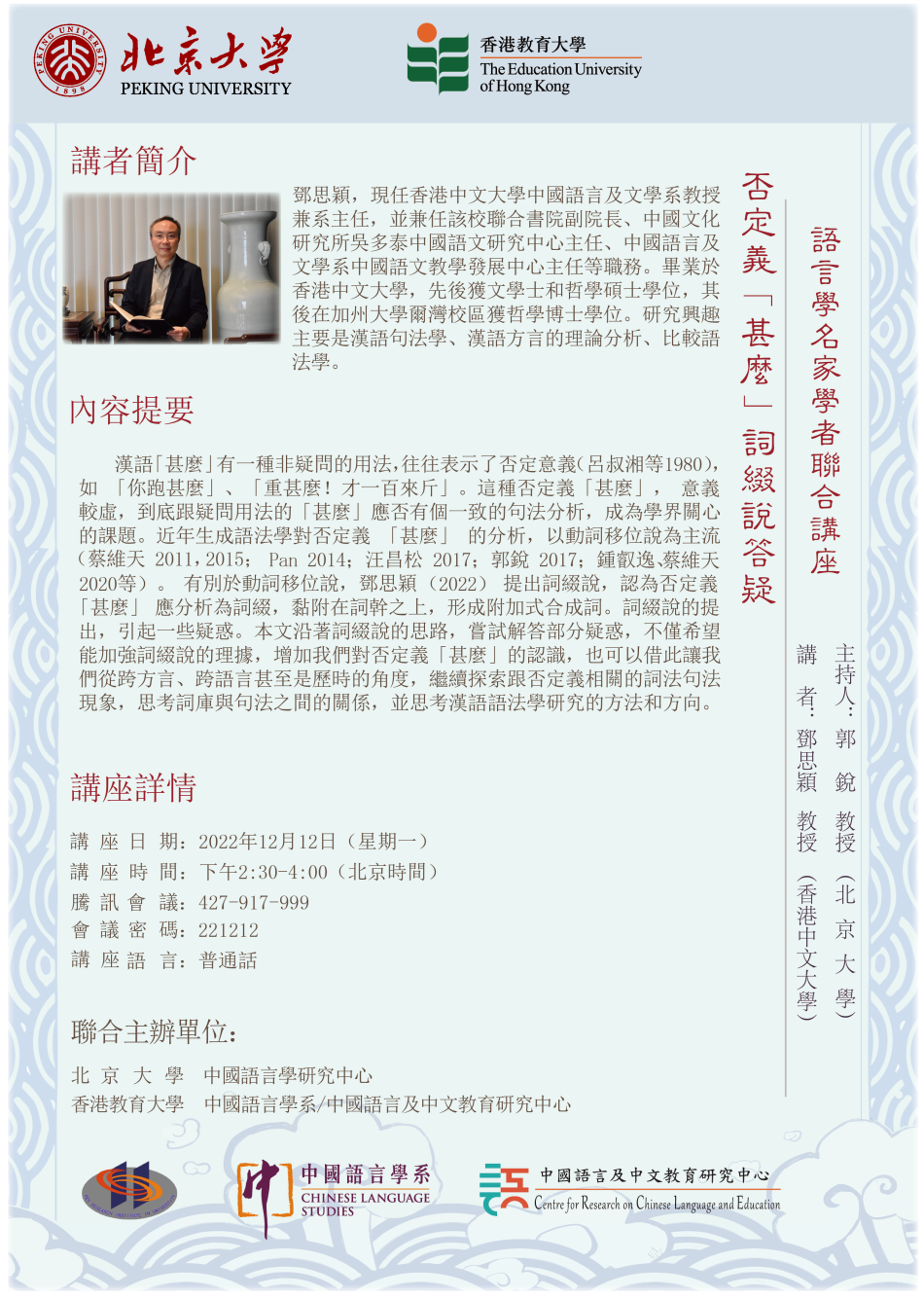 講座日期:2022年12月12日(星期一)