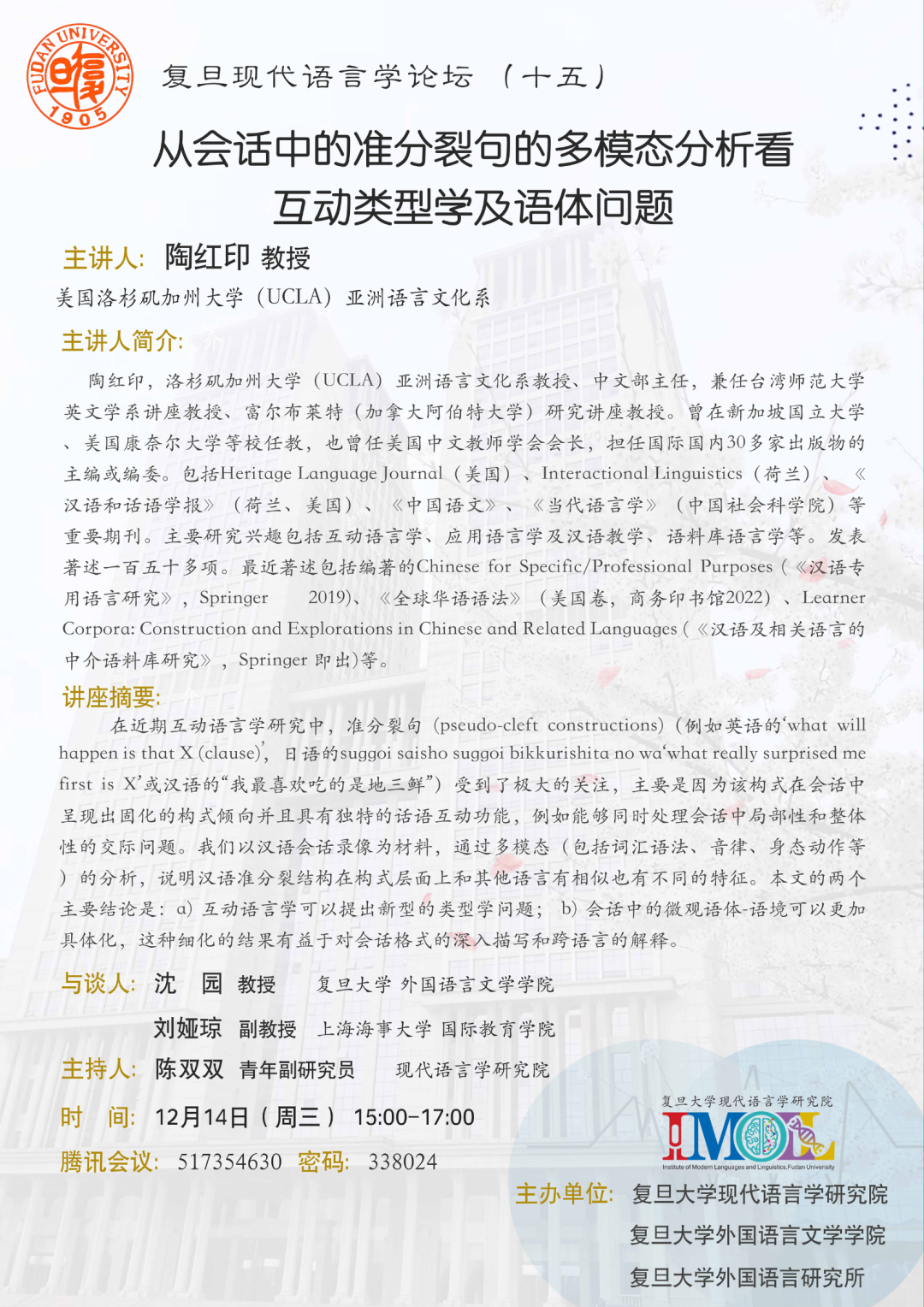 講座時間:14:30至16:00(北京時間)