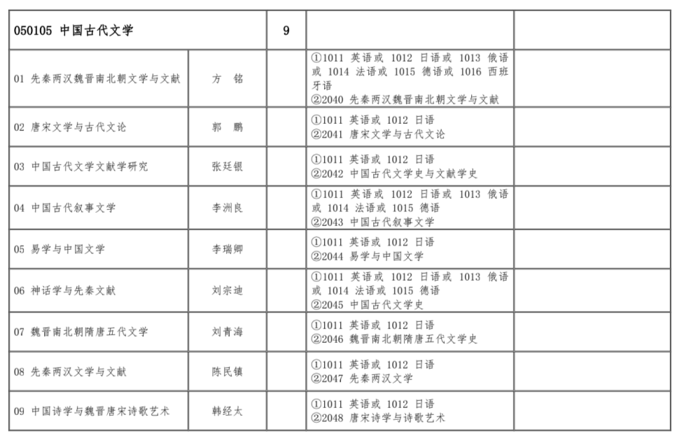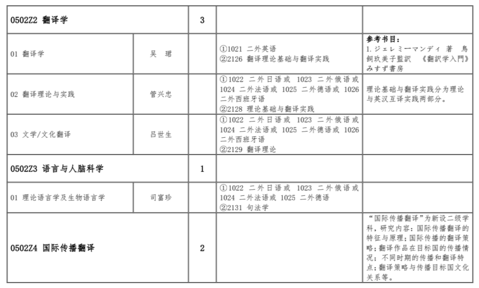 附:招生专业目录