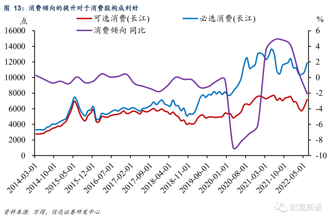 投资方面,历史数据显示,消费倾向的提升对于消费股构成利好。其中可选消费板块的弹性更大,涨幅更为突出,再加上可选消费的估值处于历史中等的水平,建议关注可选消费板块的投资机会。