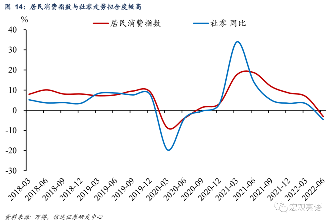 消费是居民为满足自身需求,使用其可支配收入进行交易产生的经济行为,我们可以据此搭建消费的分析框架:居民消费=就业×收入×消费倾向,变化等式可得:居民消费指数(消费同比)=就业同比+收入同比+消费倾向同比在指标选取上,就业同比选用“就业人口/劳动人口(就业人口/劳动人口=100%-调查失业率)”的同比变化来衡量;收入同比选用全国居民人均可支配收入的同比变化来衡量;消费倾向同比选用“人均消费支出/人均可支配收入”的同比变化来衡量。从结果上看,我们构建的消费指数与社零同比的走势十分相似,相关系数达0.86,验证了这一分析框架的可靠性,我们可以利用消费指数来跟踪、观察消费变化情况。