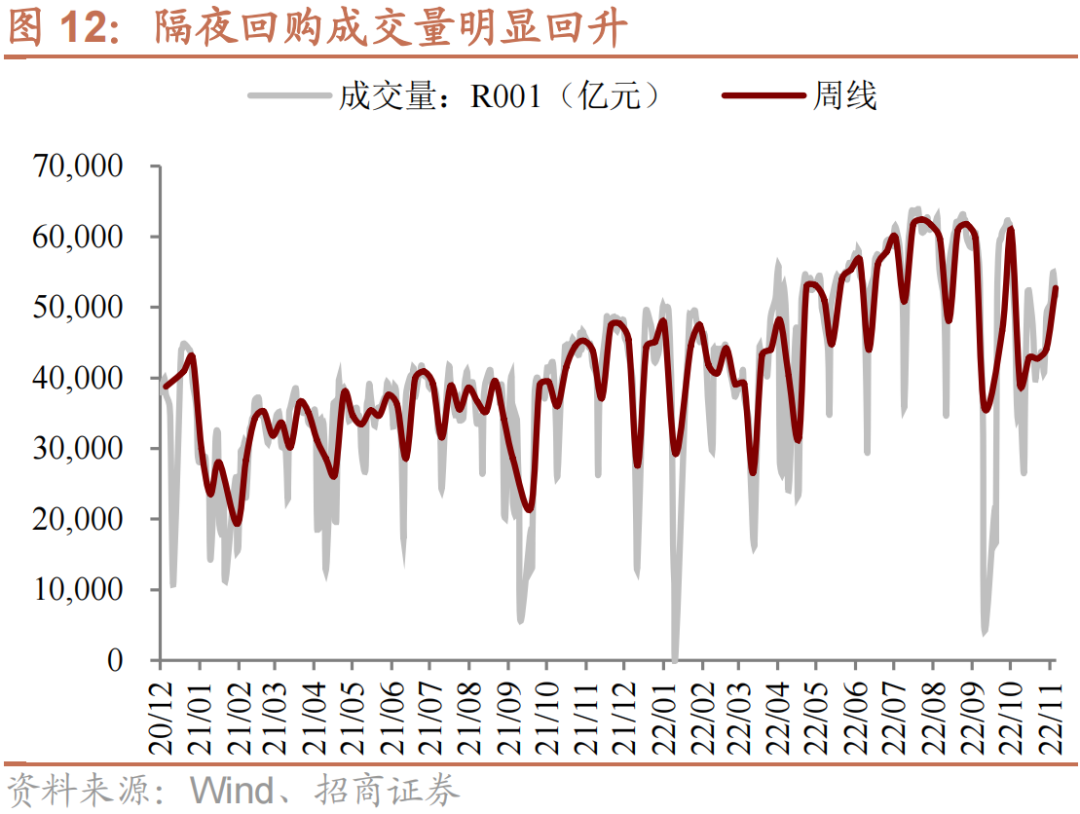 与上半年相比,“宽信用”有落脚点。11月21日,信贷工作座谈会强调 “扩大中长期贷款投放,推动加快形成更多实物工作量”、“主动靠前发力”。在今年前两次信贷工作座谈会召开后,信贷投放均有明显发力。预计近期信贷投放支持经济力度也会再度发力,聚焦在包括地产(金融十六条)、制造业设备更新、基建等领域。因此,虽然降准后资金面的压力有所缓和,但类似今年4月降准后流动性在金融体系大量“淤积”的状况在本次降准后预计不会重演。