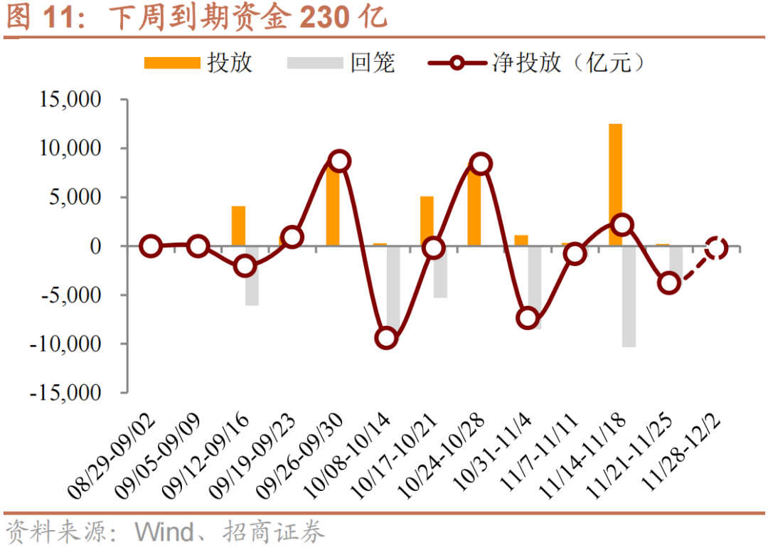 (1)基本面高频指标是否回落?此前我们讨论过后续基本面修复是“弱修复周期”,容易出现一波三折的反复。建议关注基本面高频短期的方向,如果再次走弱,有助于缓和市场情绪。(2)对资金面的预期是否修复? 11月中旬货币松紧预期指数提示市场对资金面预期从乐观向中性快速回归,本周又再度回到偏乐观区间,资金面预期有所修复。(3)超长债交易情况。基金超长债累计净买入在9月9日所在周已见顶,但当前仍处于年内中高位置。后续进一步观察超长债累计净买入规模是否回到7月初位置。