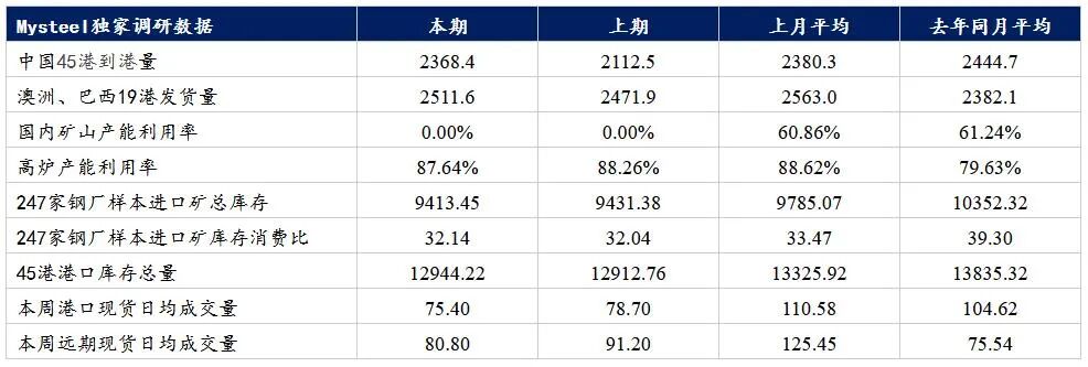 库存:本期Mysteel统计全国45个港口进口铁矿库存为12944.22万吨,环比增31.46万吨;日均疏港量307.94万吨,环比增9.21万吨;在港船舶数93条增30条。