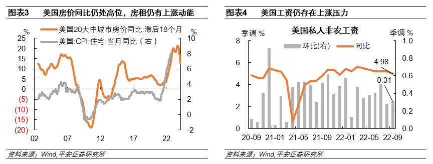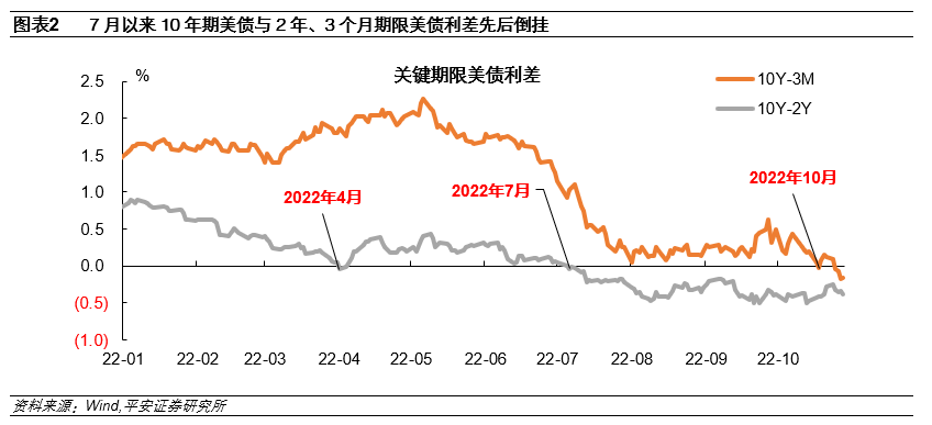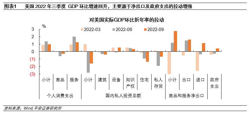 一、“强数据”与“弱预期”——美联储会放慢加息脚步么?1)美国三季度GDP数据强劲,但并不意味着经济景气度明显回暖。一方面,GDP增长结构并不健康。从结构上来看,三季度美国GDP环比读数的回升主要源于净出口及政府支出的拉动增强,但服务消费的拉动明显走弱,商品消费、私人投资分项的拉动更是连续两个季度为负。另一方面,GDP数据具有一定滞后性,而高频数据指向美国经济景气趋弱。2)近期美债收益率曲线更加平坦化,尤其10年与3个月期美债利率倒挂,反映出市场对经济的预期更为悲观。与4月和7月相比,美联储QE以及非美货币宽松对长端美债利率的压制减弱,关键期限美债利差倒挂对衰退的指示意义可能进一步加强。3)不过,当前押注美联储政策转向仍可能为时尚早:首先,目前美国就业市场仍然强劲,遏制通胀仍是首要任务。其次,在衰退真正兑现前,需求收缩对于通胀的遏制效果并不明显。最后,未来通胀形势的演绎仍有不确定性(如国际能源价格可能反弹、美国房租上涨压力犹存等)。在即将召开的11月会议,美联储大概率加息75BP;而对于后续的加息路径,尤其是12月的加息幅度,美联储或难明示一定会放缓加息,更可能保持一定程度的模糊,为政策的调整留有余地。