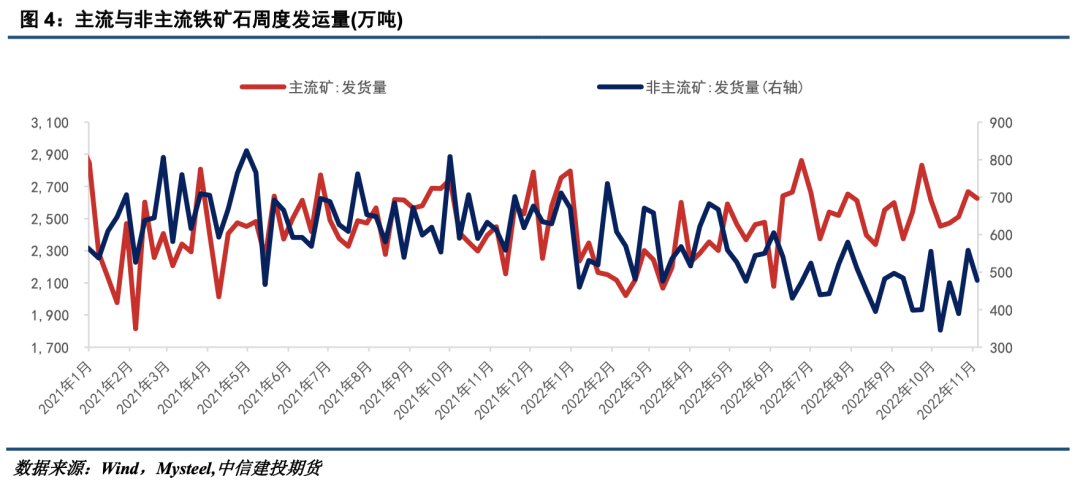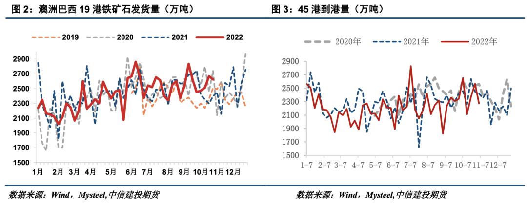 从供给结构上看,近期主流矿进口量略有增加,非主流矿进口量持稳恢复,目前两者比重在0.85:0.15左右。近期海外钢厂阶段性复产对非主流矿的发运有所支撑,但地缘政治仍是风险因素。南非地区随着罢工运动的落幕,铁矿发运已恢复至历史水平。印度矿业联合会秘书长接受采访时表示,印度十月份的铁矿石出口量几乎为零,主要受印度铁矿出口税额高企,中国经济放缓带来的铁矿需求减少及中国严格的防疫行动限制了印度铁矿石运输等因素的影响。
